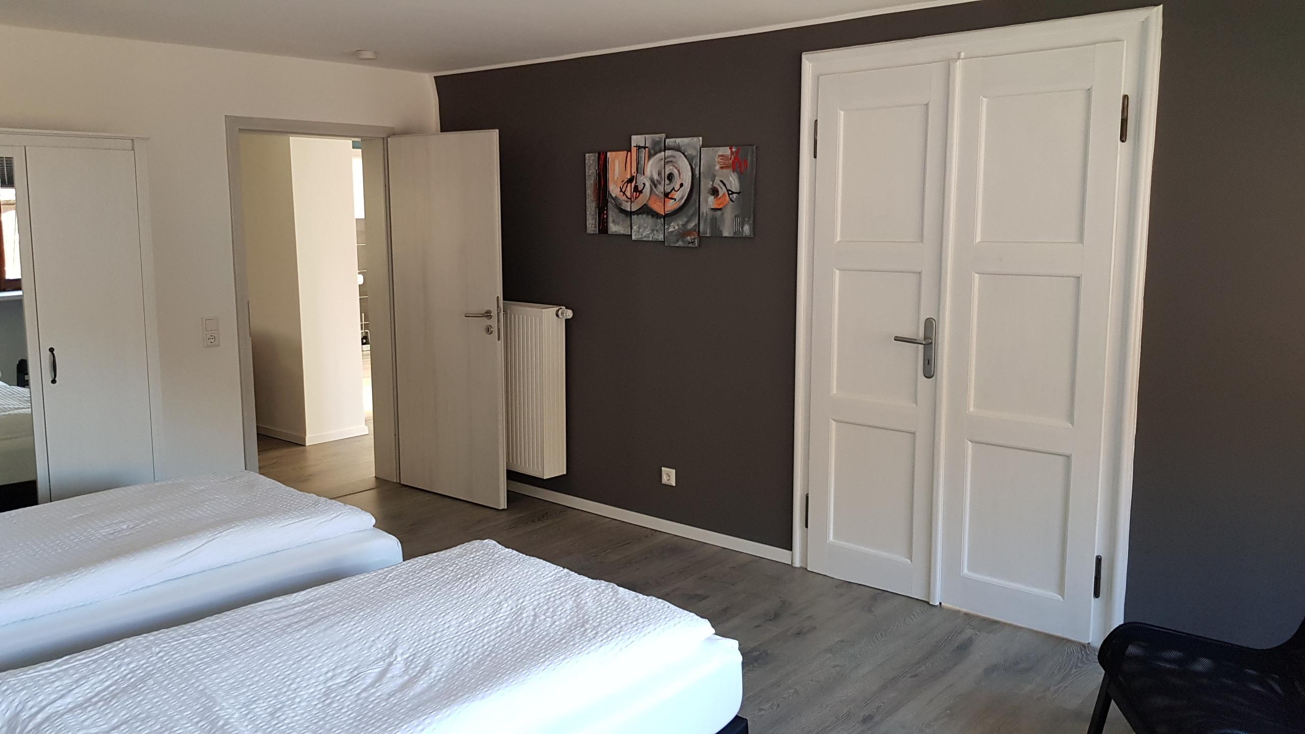 Die Wohnung bietet Ihnen 3 Schlafzimmer mit gemütlichen Boxspringbetten, eine offene, voll ausgestattete Küche, Wohnzimmer, Bad und eine separate Toilette. Sie bietet somit Platz für bis zu 6 Personen.