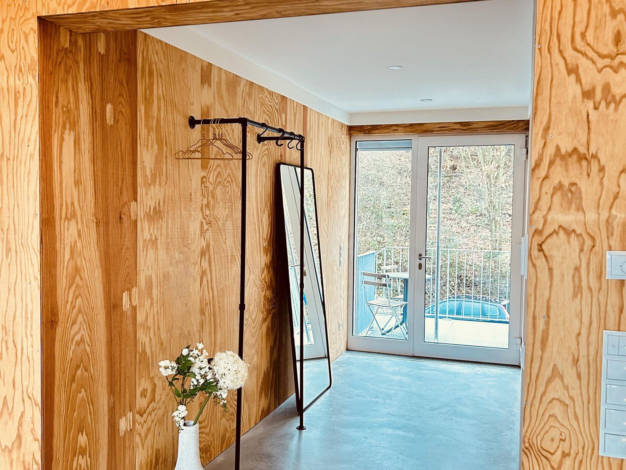 Zur Ferienwohnung gehören ein eigener Parkplatz direkt vor dem Haus, eine kleine möblierte Terrasse sowie auf Anfrage eine Grillmöglichkeit und Fahrradgarage. Die Nichtraucherwohnung wird nachhaltig über Wärmepumpe und Solarstrom versorgt.