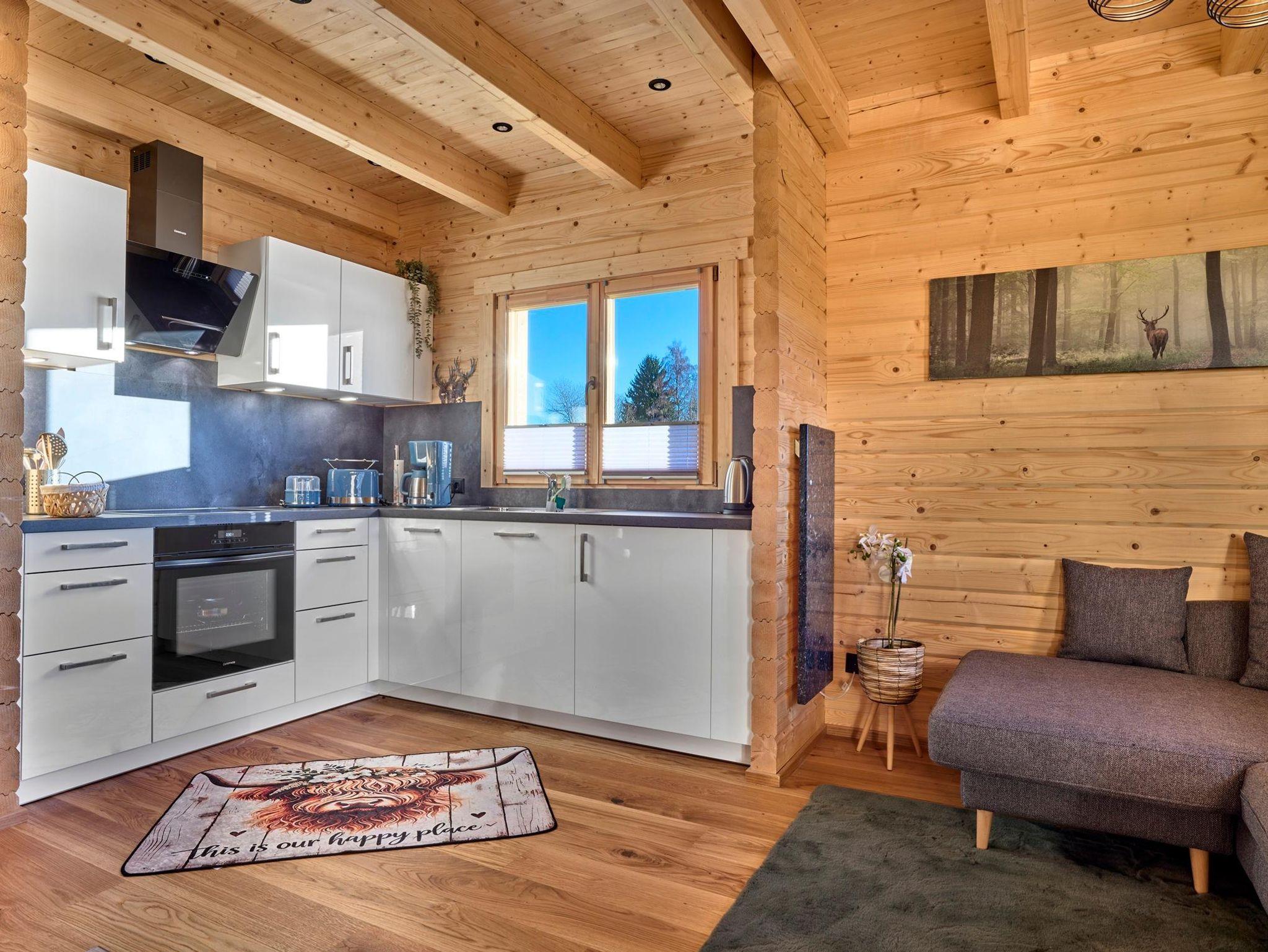 Das neu erbaute Holzhaus in idyllischer Lage in Riedlhütte bietet Platz für bis zu 4 Personen. Perfekt für einen erholsamen Urlaub mitten in der Natur des Bayrischen Waldes. Genießen sie die Ruhe, klare Luft und herrliche Landschaft. Wanderwege und Ausflugsmöglichkeiten liegen direkt vor der Haustür. Ausgestattet ist das Haus mit einem Holzofen im Wohnbereich für gemütliche Abende, vollausgestattete Küche, zwei Schlafzimmer mit jeweils einem Doppelbett , ideal für Paare oder Familien, 1 Bad mit Dusche und WC, extra WC. Carport direkt am Haus, kostenfreies WLAN, eine Langlaufloipe führt direkt am Haus vorbei, große Sonnenterrasse, 2 Balkone.