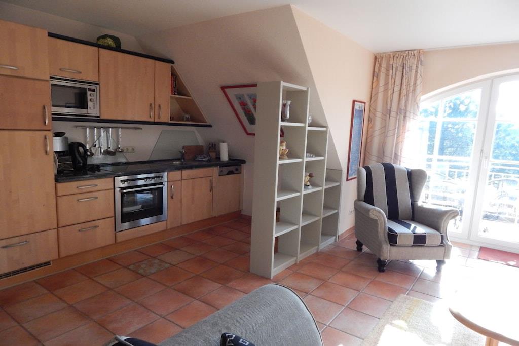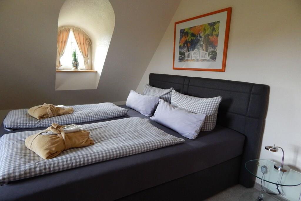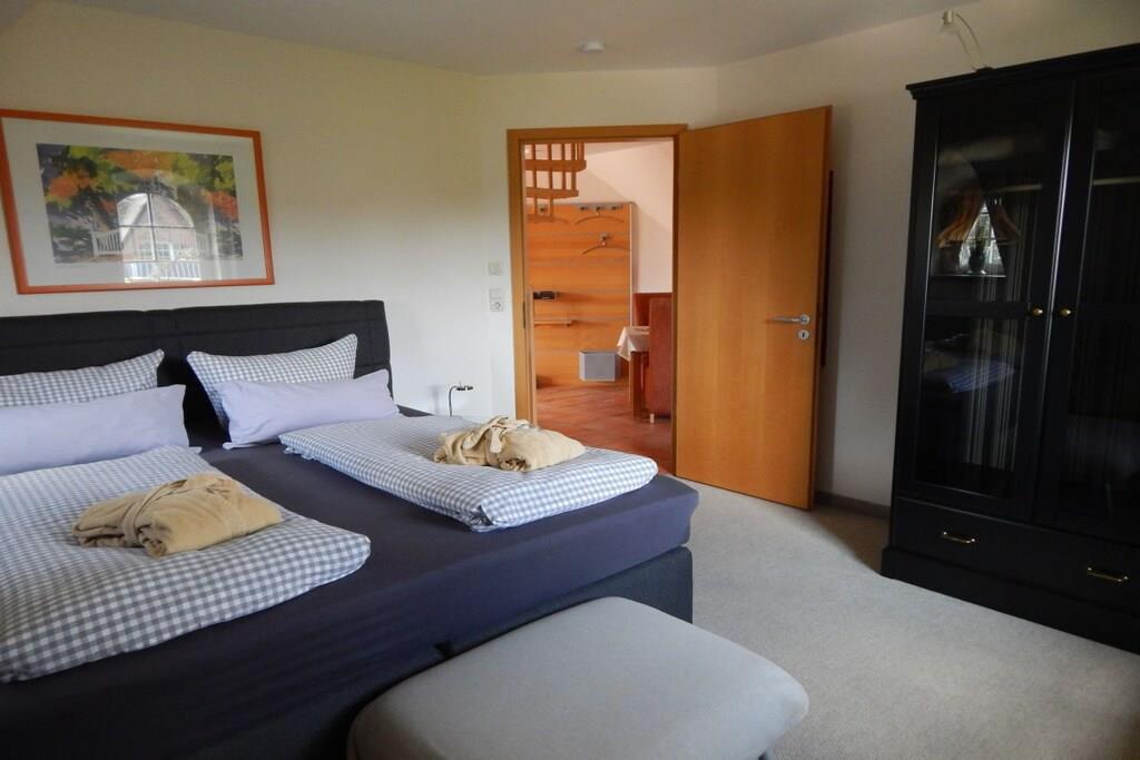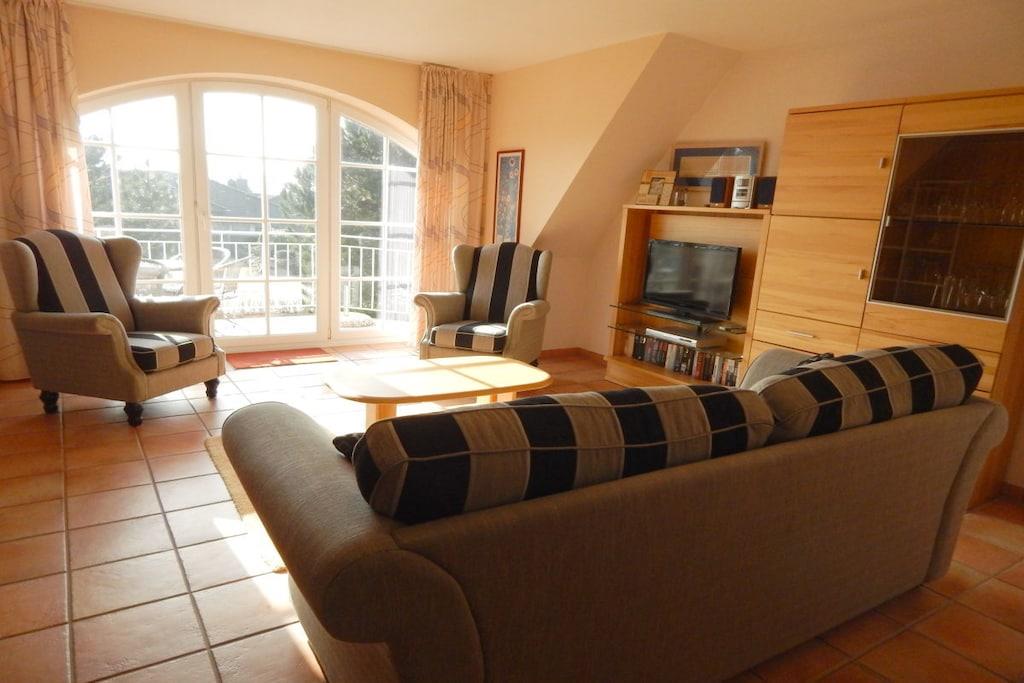 Die luxuriöse Ausstattung der Ferienwohnung im Böhler Butendiek lässt keine Wünsche offen. Im hochwertigen Bad in Granit finden sie eine Dusche, Haartrockner sowie einen Handtuchwärmer mit Handtüchern und Bademänteln vor. Die geräumige Küche ist ausgestattet mit einer Mikrowelle, Geschirrspüler, Gefrierkombination, Cerankochfeld, Backofen und vielem mehr. Im gemütlichen Wohnzimmer befinden sich selbstverständlich , TV und DVD-Player mit Stereoanlage. Das untere Schlafzimmer ist neu mit 180 X 200 großem Boxspringbett ausgestattet. Der eigene Balkon lädt zum Verweilen ein. Wir versorgen sie täglich nach Wunsch mit frischen Handtüchern, Brötchen, Tageszeitung und Kurkarten im Preis inbegriffen.