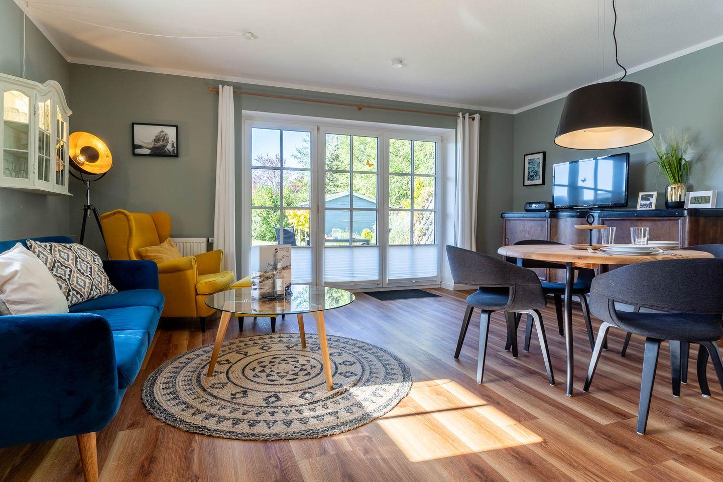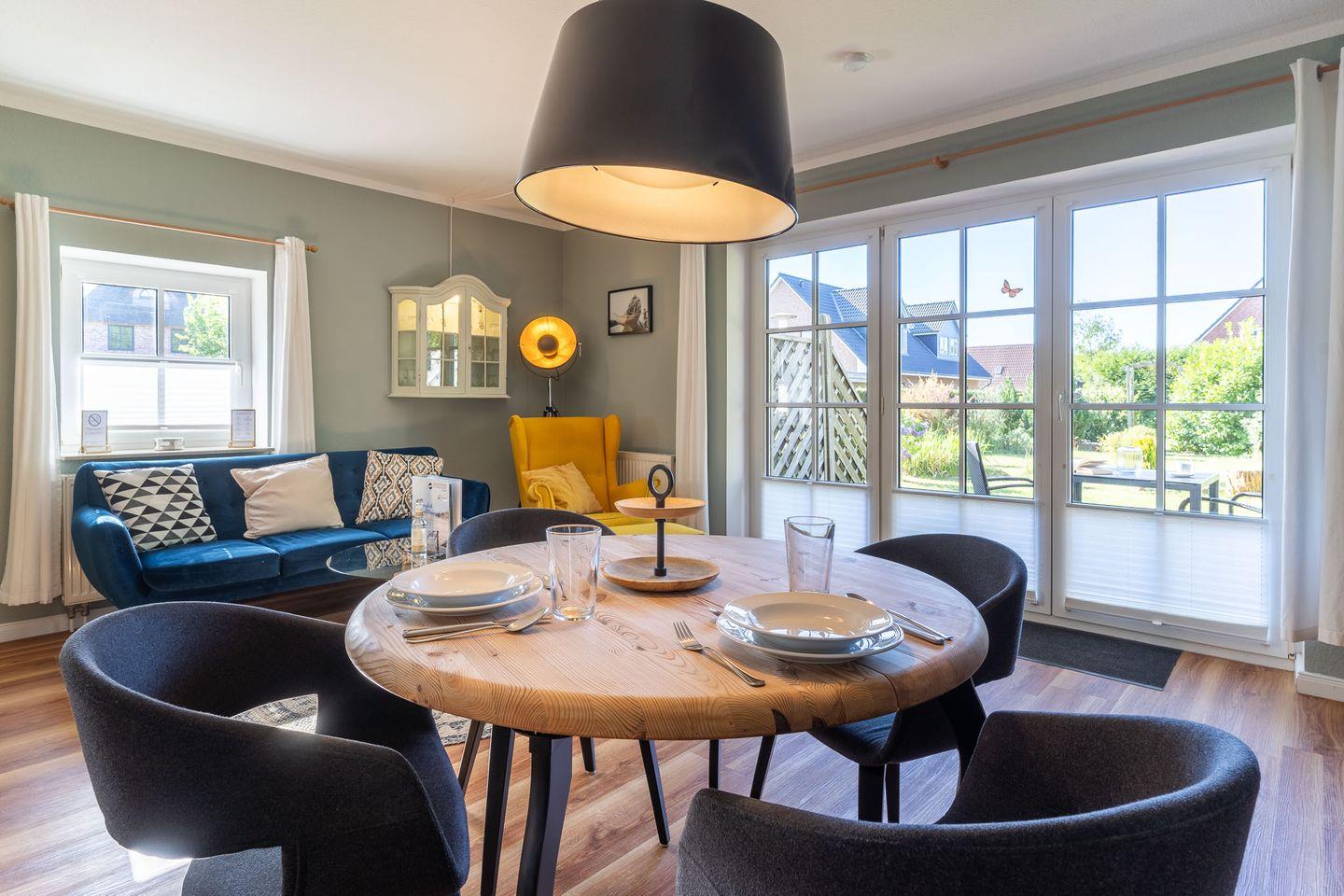 Gemütliche 2-Zimmer-Wohnung mit ca. 52?m² im Erdgeschoss für 2 Personen. Mit Südterrasse, voll ausgestatteter Küche, WLAN, Sat-TV, Duschbad und Parkplatz direkt vorm Haus. Ideal für Paare mit oder ohne Hund – ruhig, strandnah, liebevoll eingerichtet.