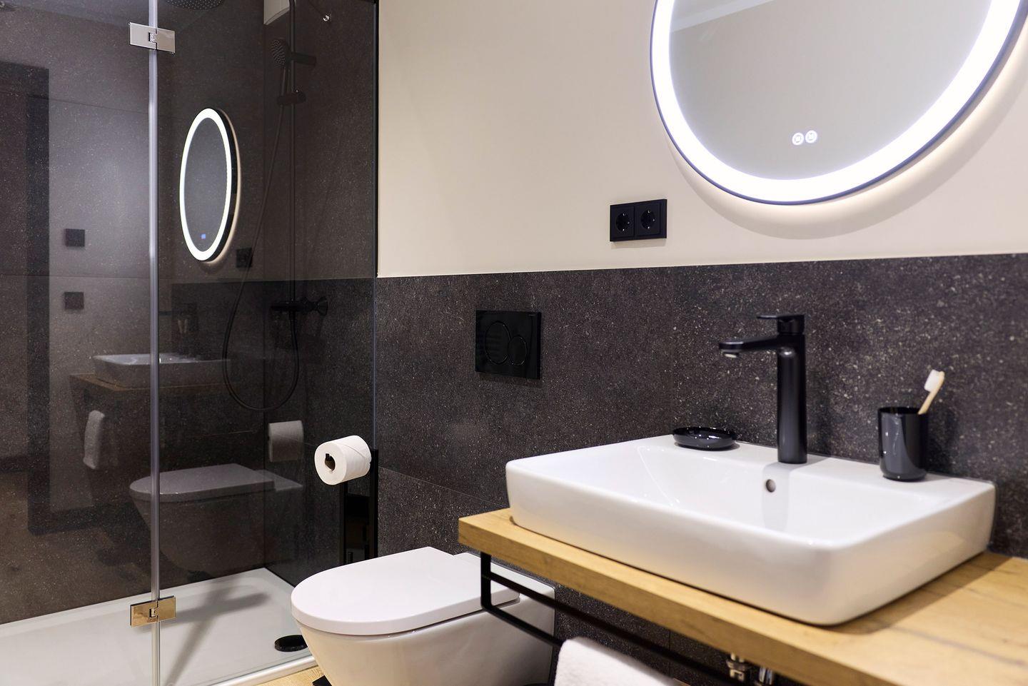 Der möblierte Balkon lädt zu einem Frühstück in der Sonne ein. Das Schlafzimmer ist mit einem komfortablen Doppelbett, Schrank und Smart TV ausgestattet. Ein Plus: der direkte Zugang zum Balkon! Zudem verfügt das Apartment über ein modernes, mit Natursteinfliesen gestaltetes Badezimmer.