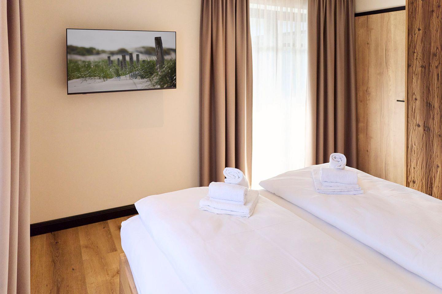Gemütliche Wohnung im Binnendiek Resort Sankt Peter-Ording mit moderner Ausstattung und Wellnessbereich, ideal für erholsame Tage zu zweit.