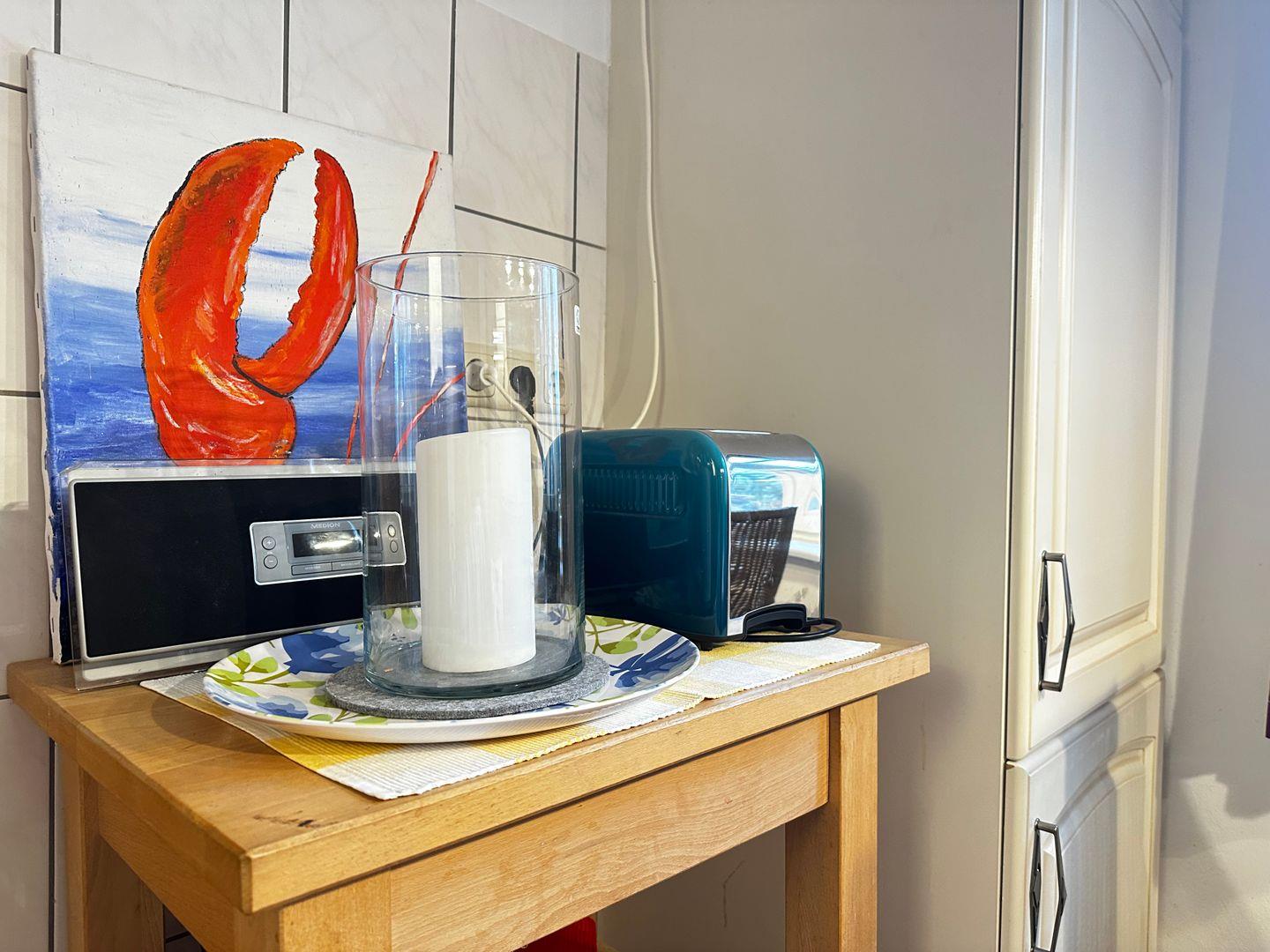 Die im Erdgeschoss gelegene Wohnung ist liebevoll im maritimen Stil eingerichtet. Freundliche Farben und ausgewählte Dekorationen sorgen für eine behagliche und entspannte Atmosphäre.
