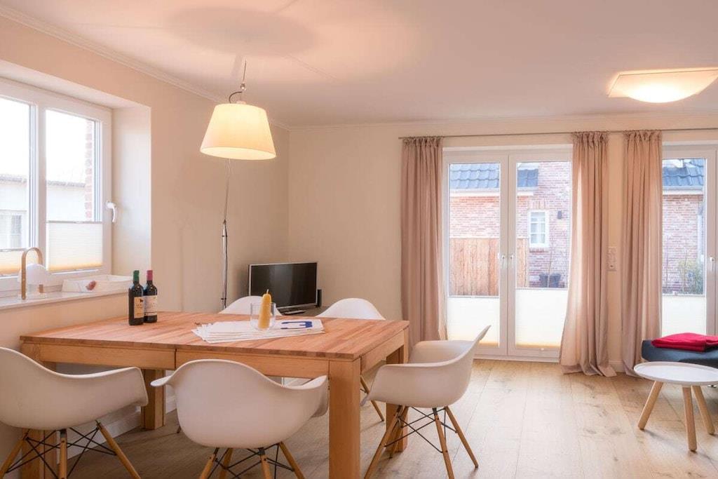 Gemütliches Ferienhaus Grüppenhus in Sankt-Peter-Ording mit Kamin, Terrasse und kostenlosem Strandkorb am Nordseestrand.