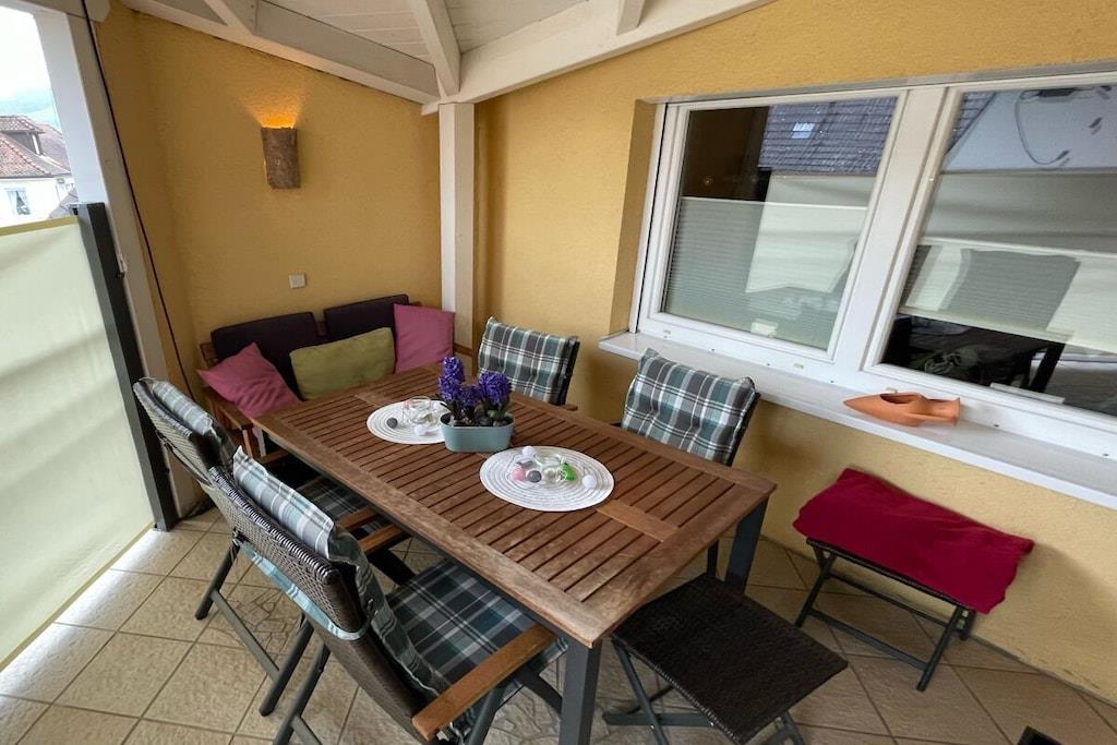 Unsere neu renovierte und liebevoll ausgestattete Ferienwohnung bietet Ihnen auf ca. 80qm Platz für 4 - 5 Personen. Sie schlafen im Schlafzimmer im Doppelbett (Kinderreisebett). Im hellen Wohnzimmer mit Balkon, befindet sich ein Sofa und großes Bett. Beide Zimmer verfügen außerdem über (Sat-)TV. In der sehr gut ausgestatteten Küche stehen ein Ceran-Kochfeld, Backofen, Mikrowelle, Spülmaschine, Kühlschrank, Kaffeemaschine, Senseo Pad-Maschine, Wasserkocher und Toaster zur Verfügung. Der gemütliche Essbereich hat einen direkten Zugang zum großen überdachten und möblierten Balkon mit Blick auf die Weinberge. Bei starkem Sonnenschein schützt eine zusätzliche Seitenmarkise. Im großen, hellen Badezimmer sind Waschbecken, WC, Dusche und auch eine Badewanne vorhanden. Ladestation Wallbox für E-Autos in der Garage! Bitte melden Sie sich wenn möglich zuerst telefonisch bei uns, bevor Sie eine verbindliche Anfrage stellen, Dankeschön.