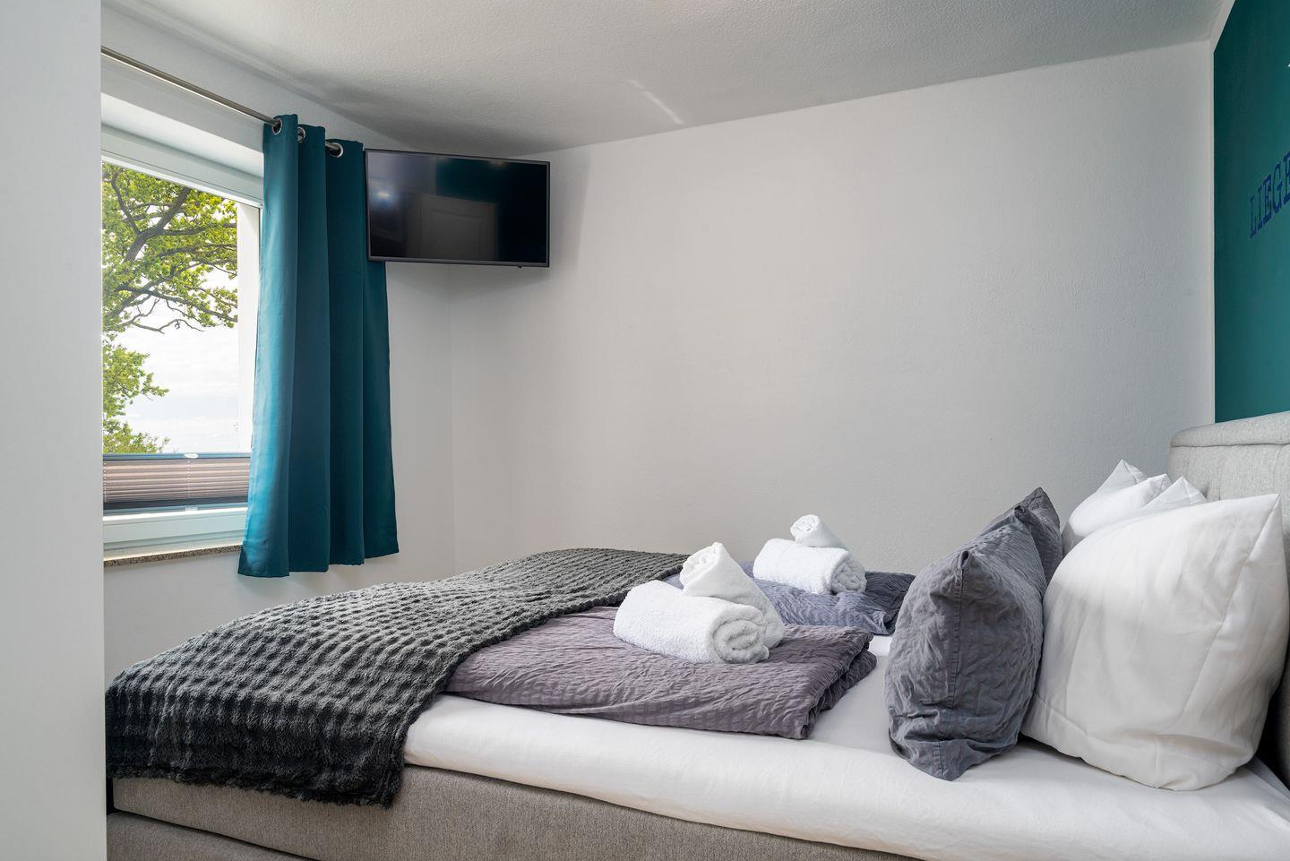 -- Schlafzimmer 2: Zwei Einzelbetten (je 90x200), Flachbild-TV