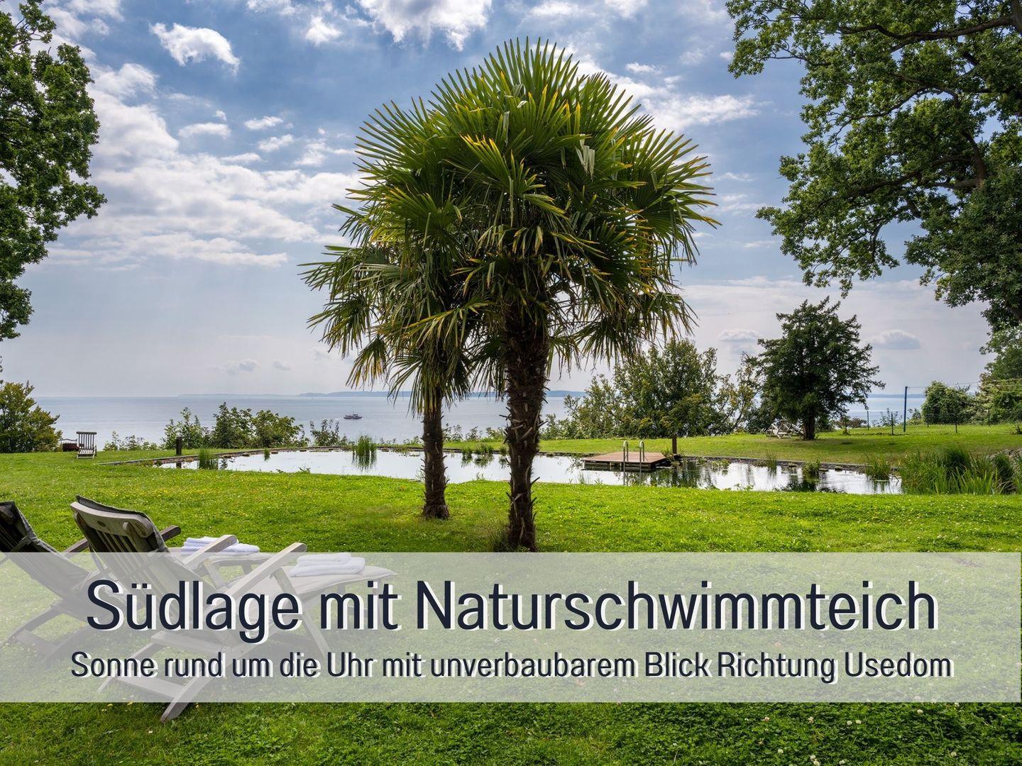 - Sonnige Südlage mit unverbaubarem Blick über den Natur-Schwimmteich bis hinüber nach Usedom