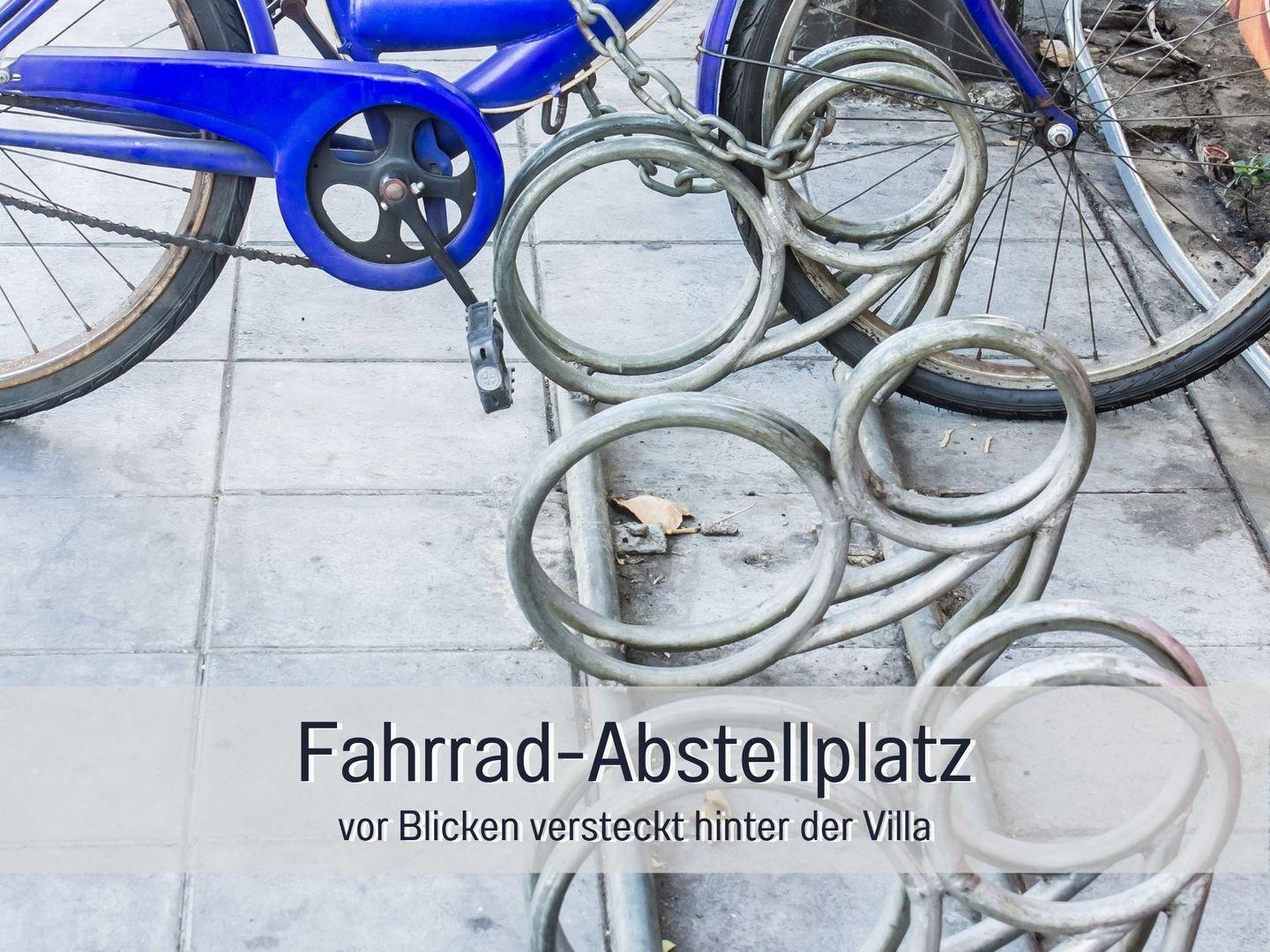 - Fahrrad-Abstellplatz versteckt hinter der Villa