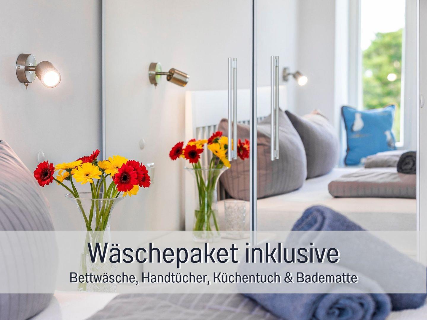 - Wäschepaket inklusive (Bettwäsche, Handtücher, Küchentuch, Badematte)