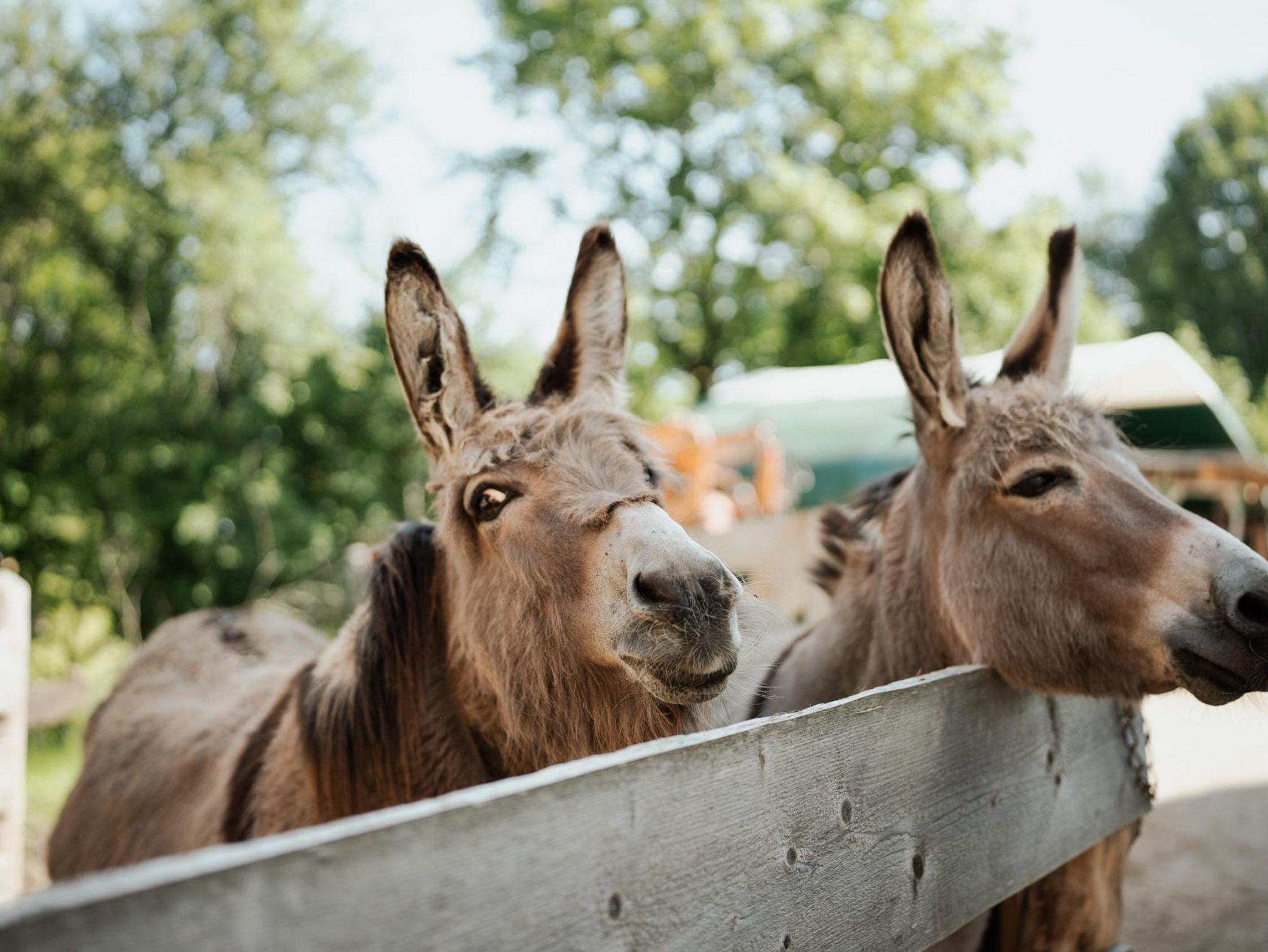 Die Esel und Ziegen stehen jederzeit für einen Spaziergang mit Euch bereit.