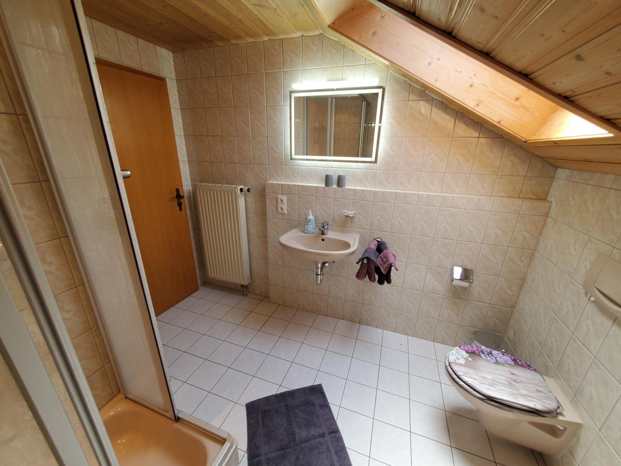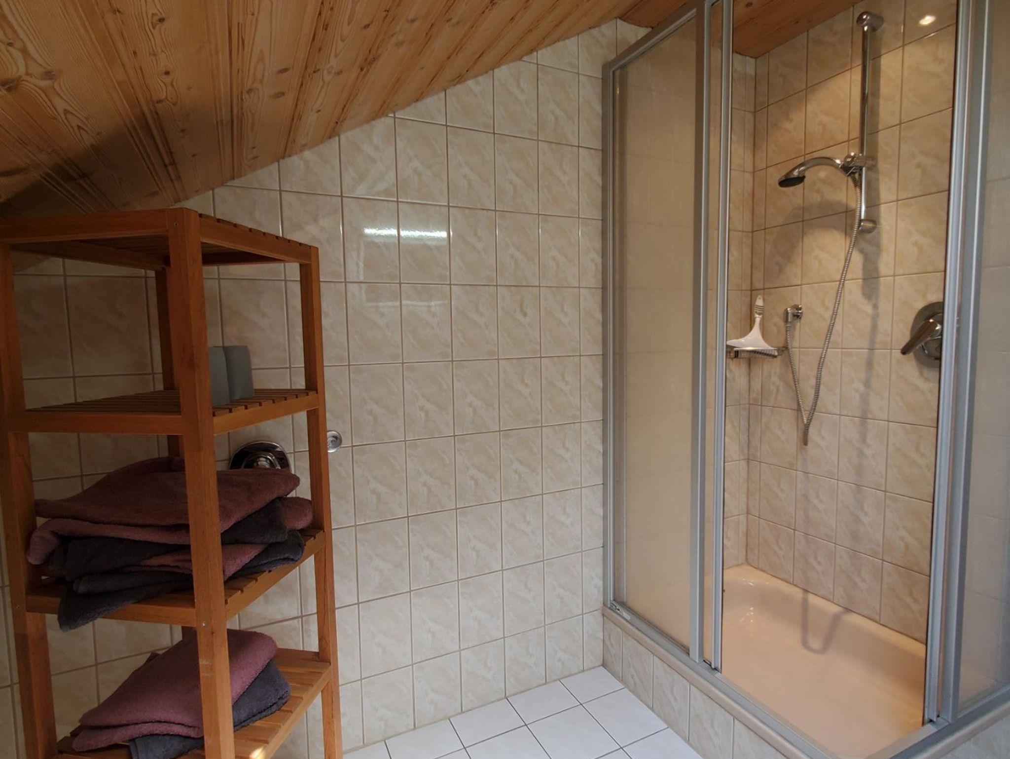 Im Badezimmer findest Du eine Dusche und das WC, sowie Handtücher und einen Fön.