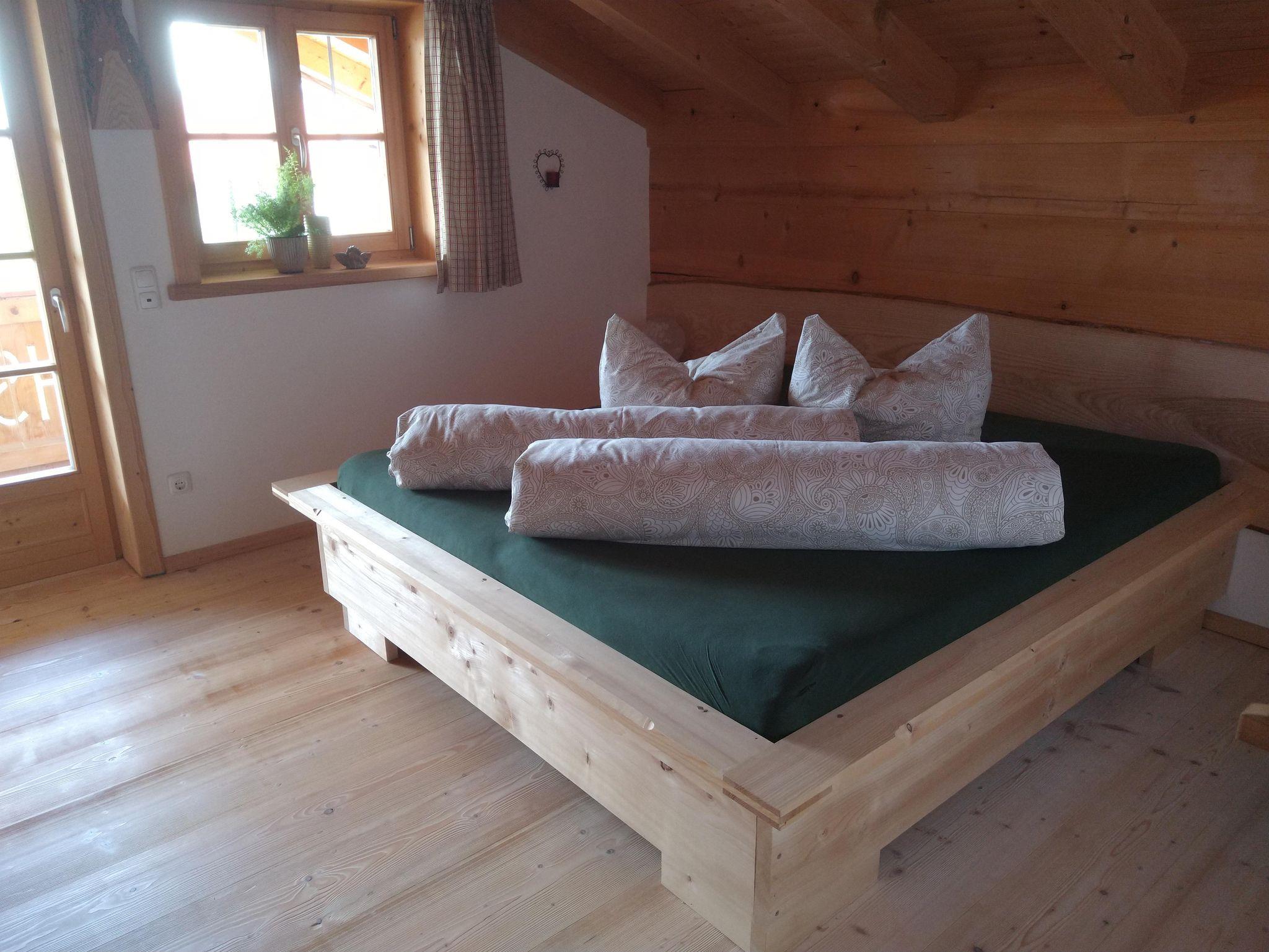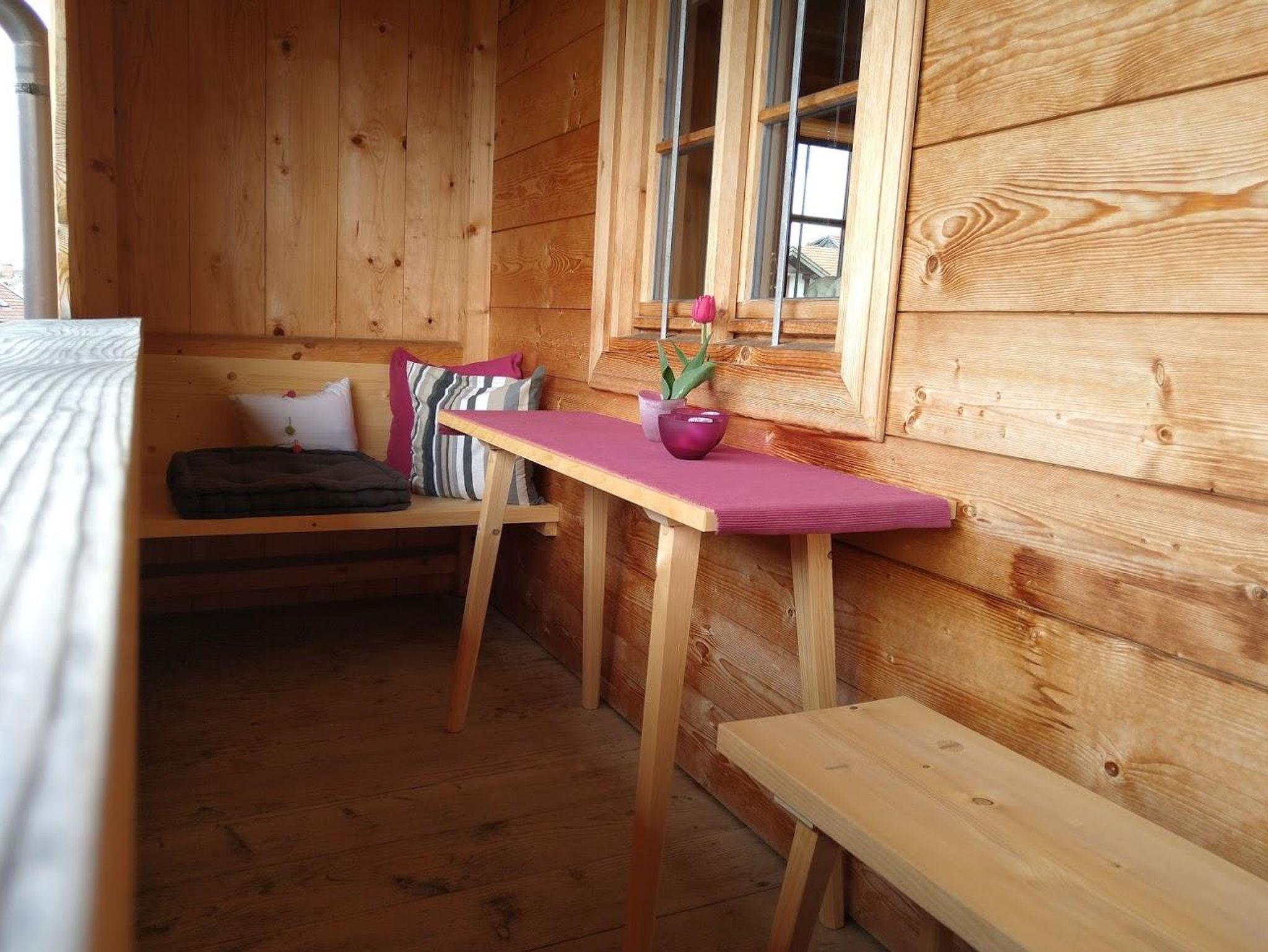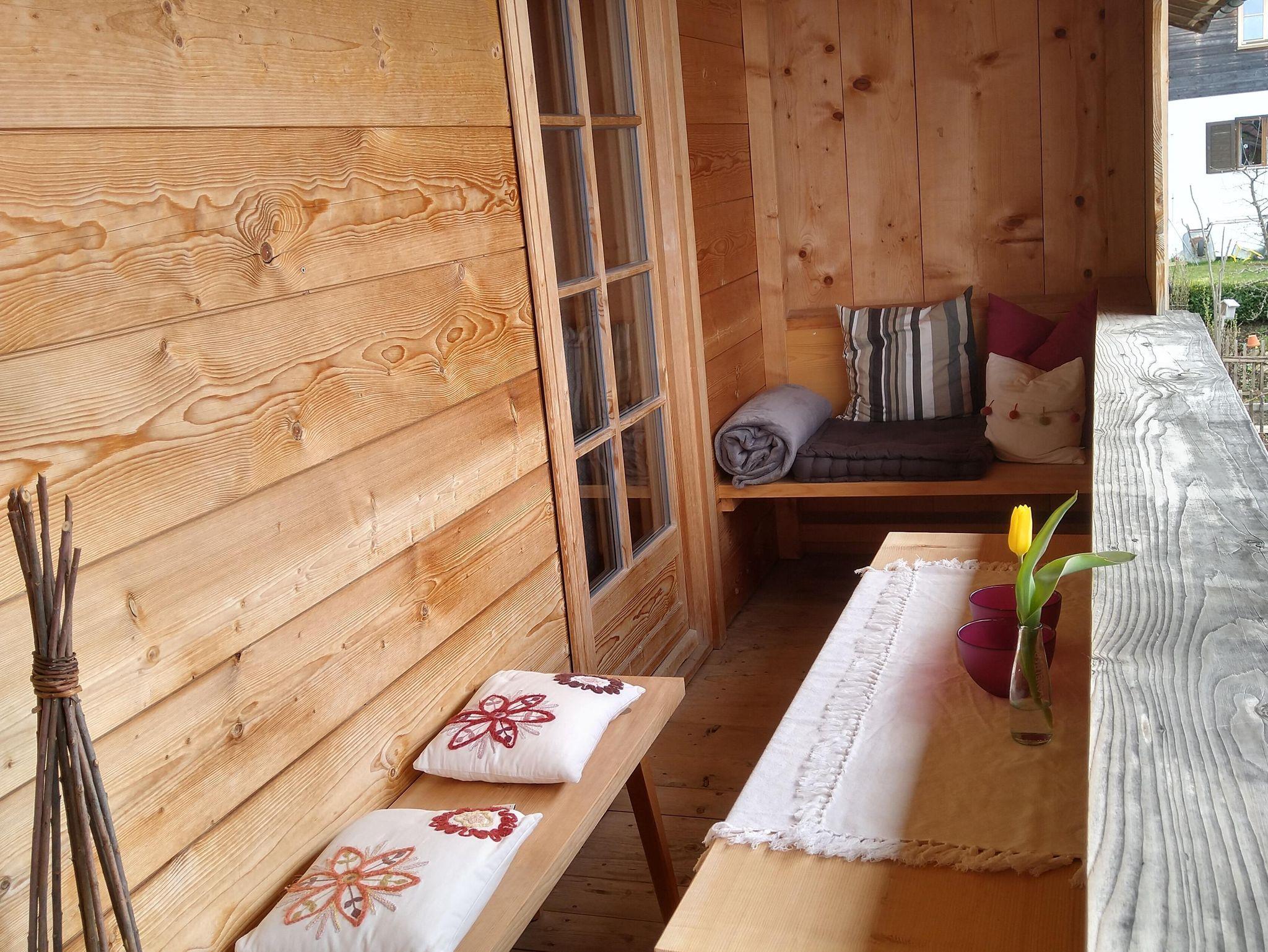 Unser selbst angefertigtes Blockhaus, aus heimischen Holz, bietet Ihnen ein unvergessliches Urlaubserlebnis. Mit sehr viel Liebe zum Detail wurde die Ausstattung und die kompletten Möbel in unserer eigenen Werkstatt produziert. Auf unseren 2 Balkonen können Sie Berg- und Weitblick genießen. Unsere sehr weit und großzügig ausgestattete Wohnküche mit Kaminofen vermittelt Gemütlichkeit und Bodenständigkeit.