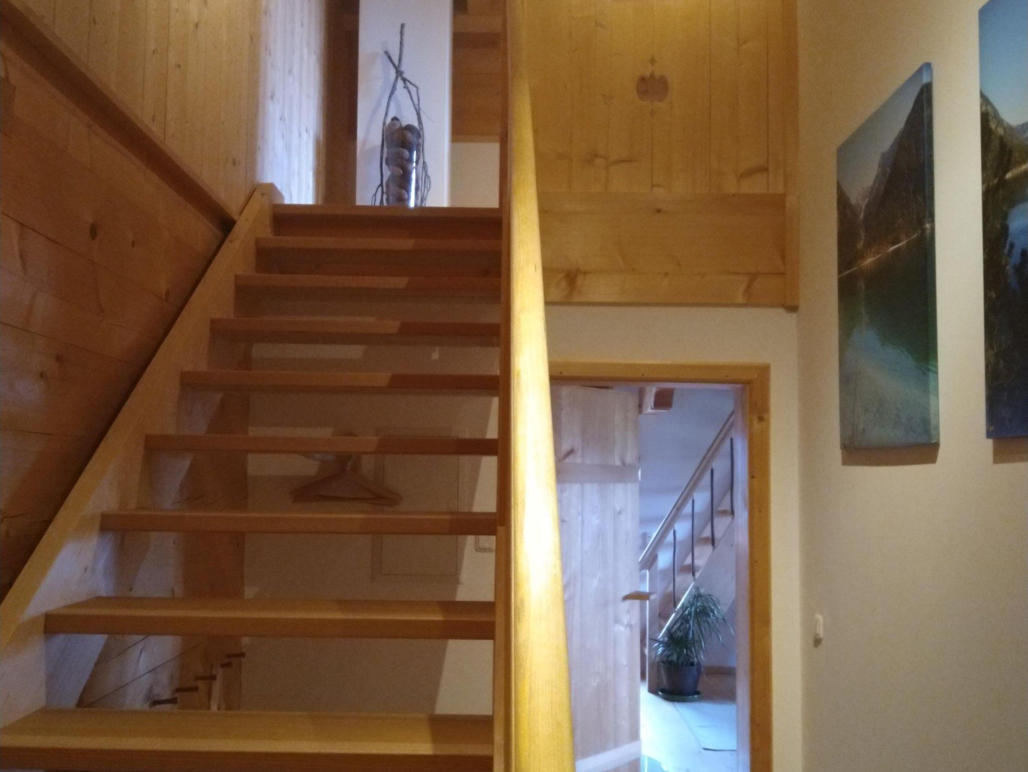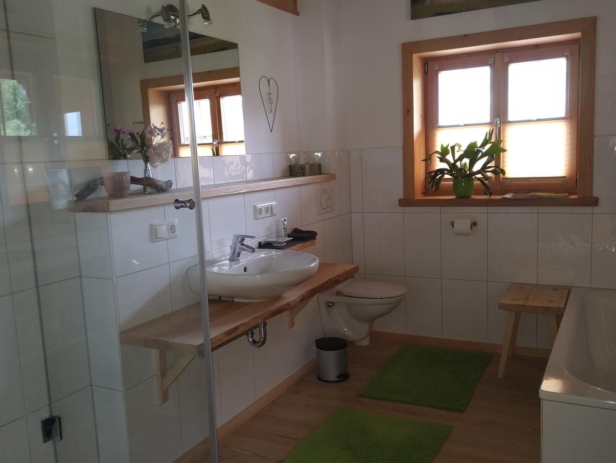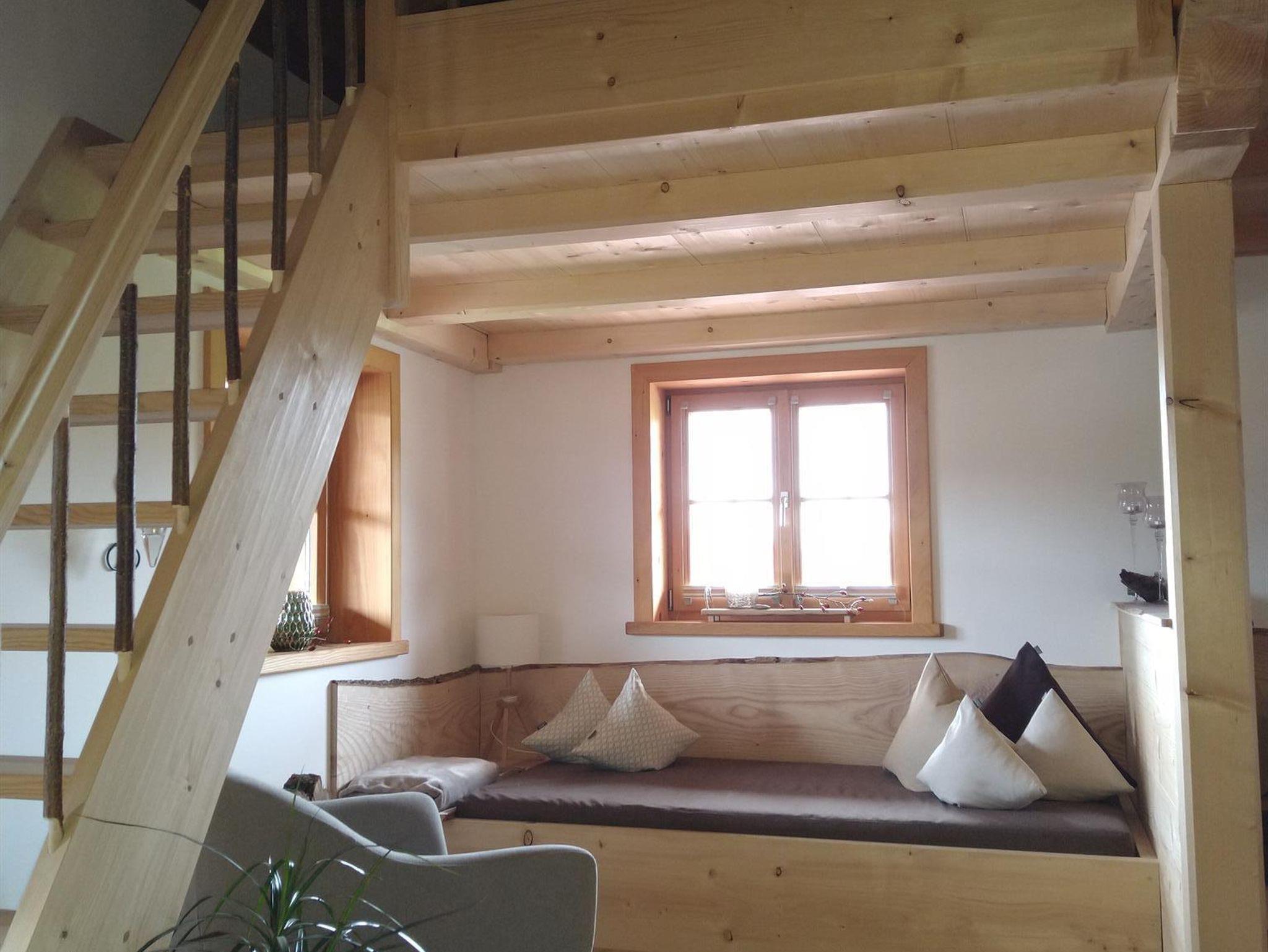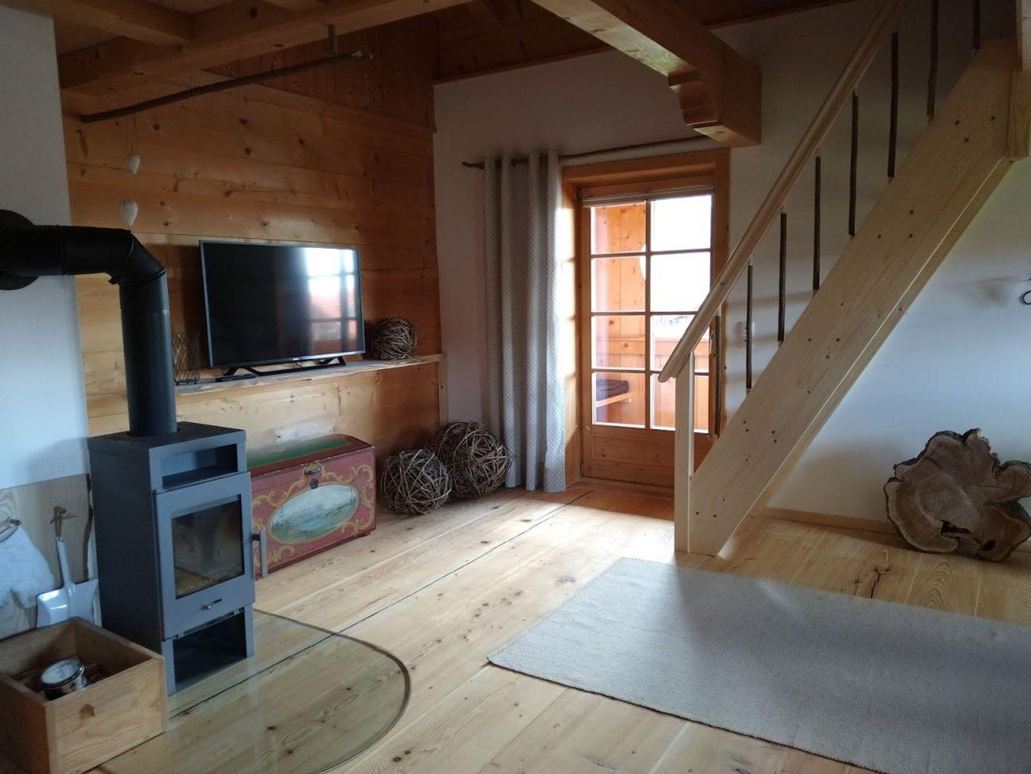 Unser selbst angefertigtes Blockhaus, aus heimischen Holz, bietet Ihnen ein unvergessliches Urlaubserlebnis. Mit sehr viel Liebe zum Detail wurde die Ausstattung und die kompletten Möbel in unserer eigenen Werkstatt produziert. Auf unseren 2 Balkonen können Sie Berg- und Weitblick genießen. Unsere sehr weit und großzügig ausgestattete Wohnküche mit Kaminofen vermittelt Gemütlichkeit und Bodenständigkeit.