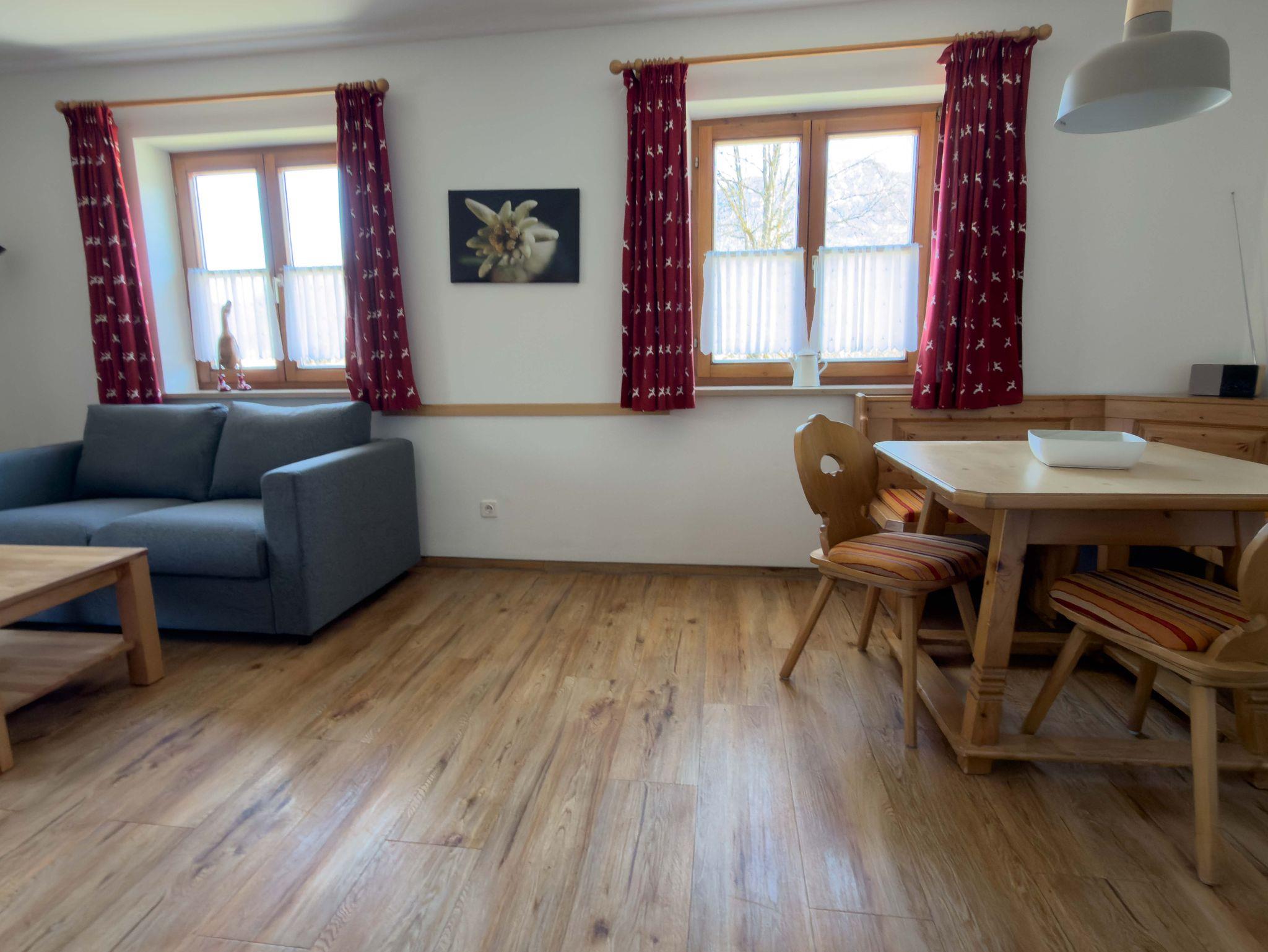 Die behagliche 2-Zimmer-Ferienwohnung 12 befindet sich im ersten Stock des Landhaus Waldhauser und bietet auf 42 m² einen komfortablen Rückzugsort für 1–2 Personen. Der Balkon lädt zum Frühstücken an der frischen Alpenluft ein und bietet einen Blick auf die Berchtesgadener Bergwelt.