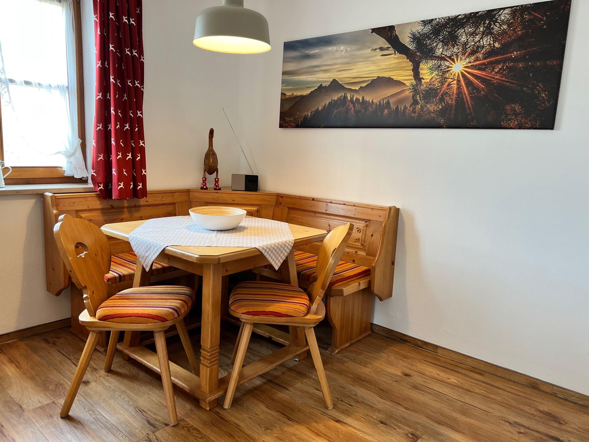Es erwarten Sie gemütliche, im Landhausstil eingerichtete Ferienwohnungen. Alle Ferienwohnungen haben ein Wohnzimmer mit Sat-TV, eine Küchenzeile mit 2-Plattenkochfeld und Kühlschrank (einzelne Wohnungen verfügen auch über eine separate Küche oder größere Küchenzeile mit Backofen), 1-3 Schlafzimmer und Balkon. Von fast allen Balkonen haben sie einen wunderbaren Blick auf die umgebende Bergwelt. Drei der Ferienwohnungen liegen im Erdgeschoss und haben einen separaten Eingang und eine kleine Terrasse bzw. einen Sitzbereich im Freien.