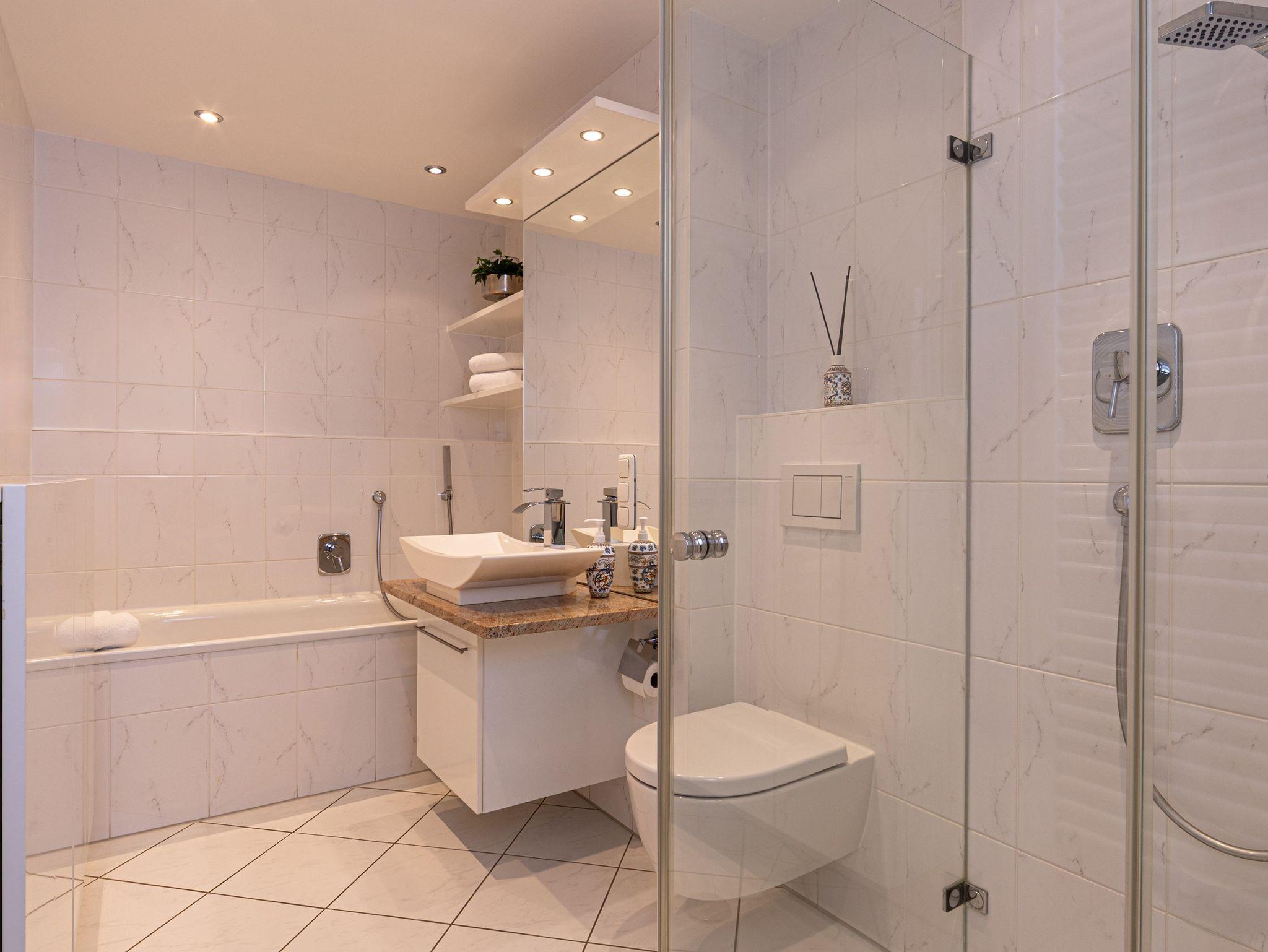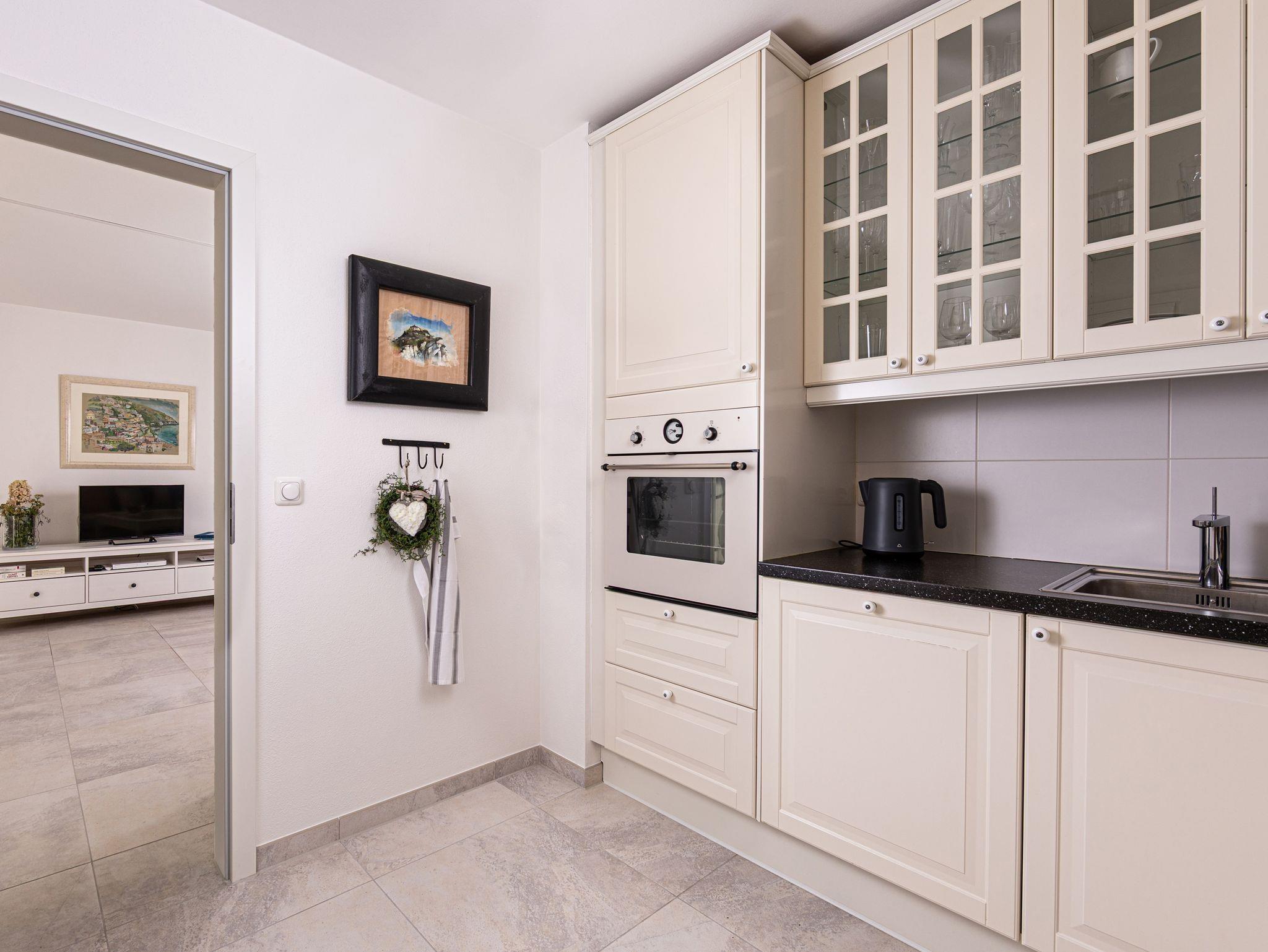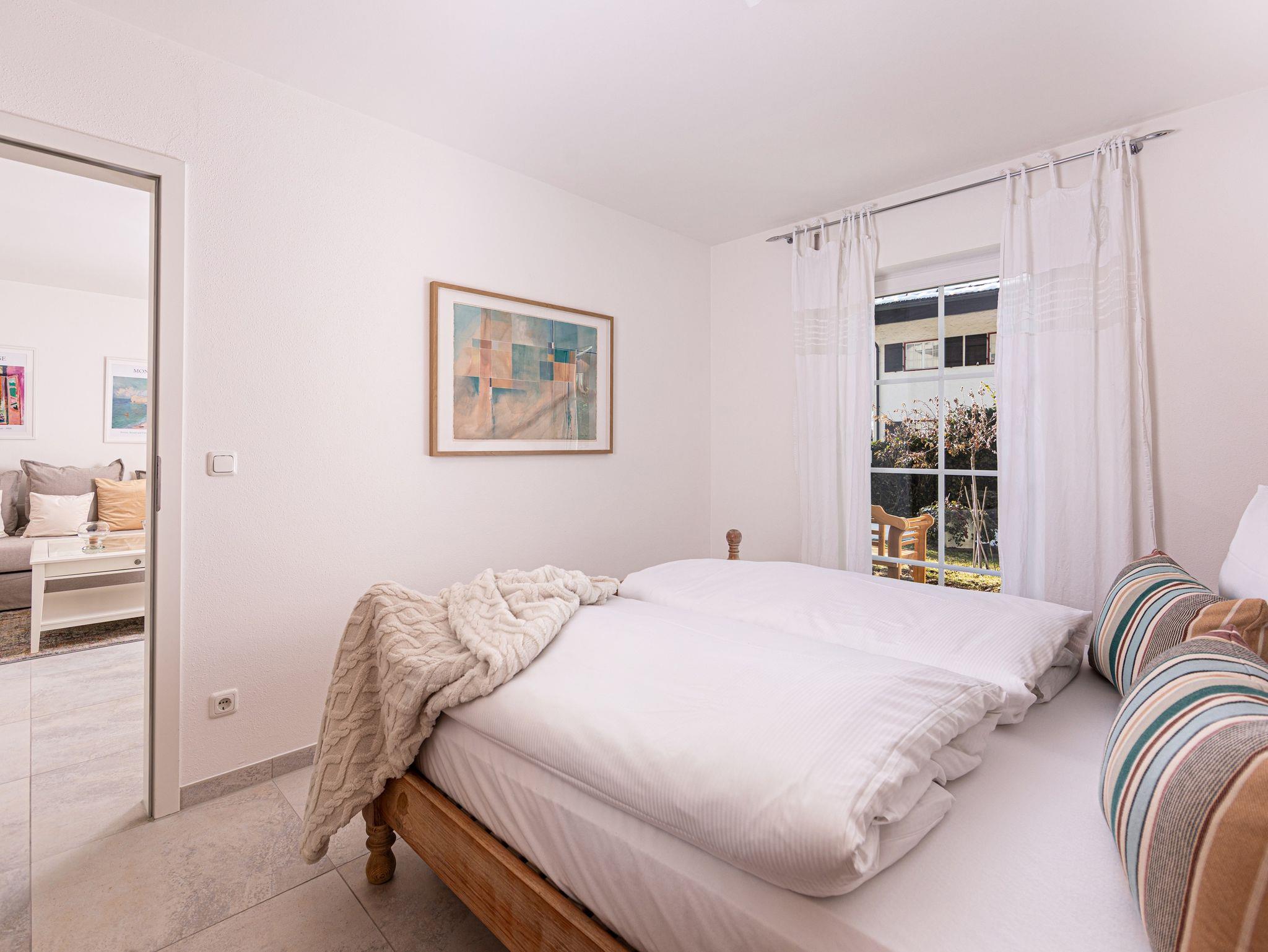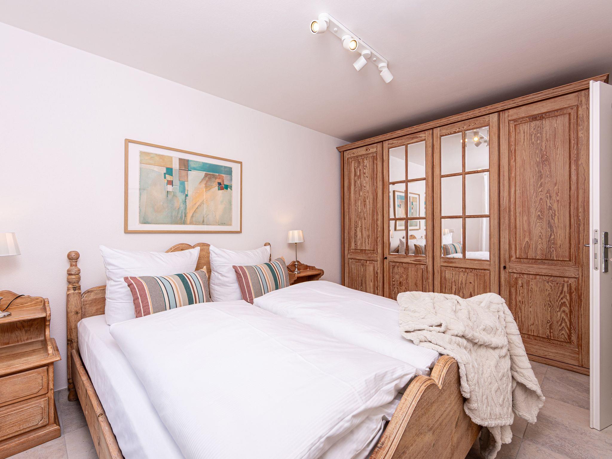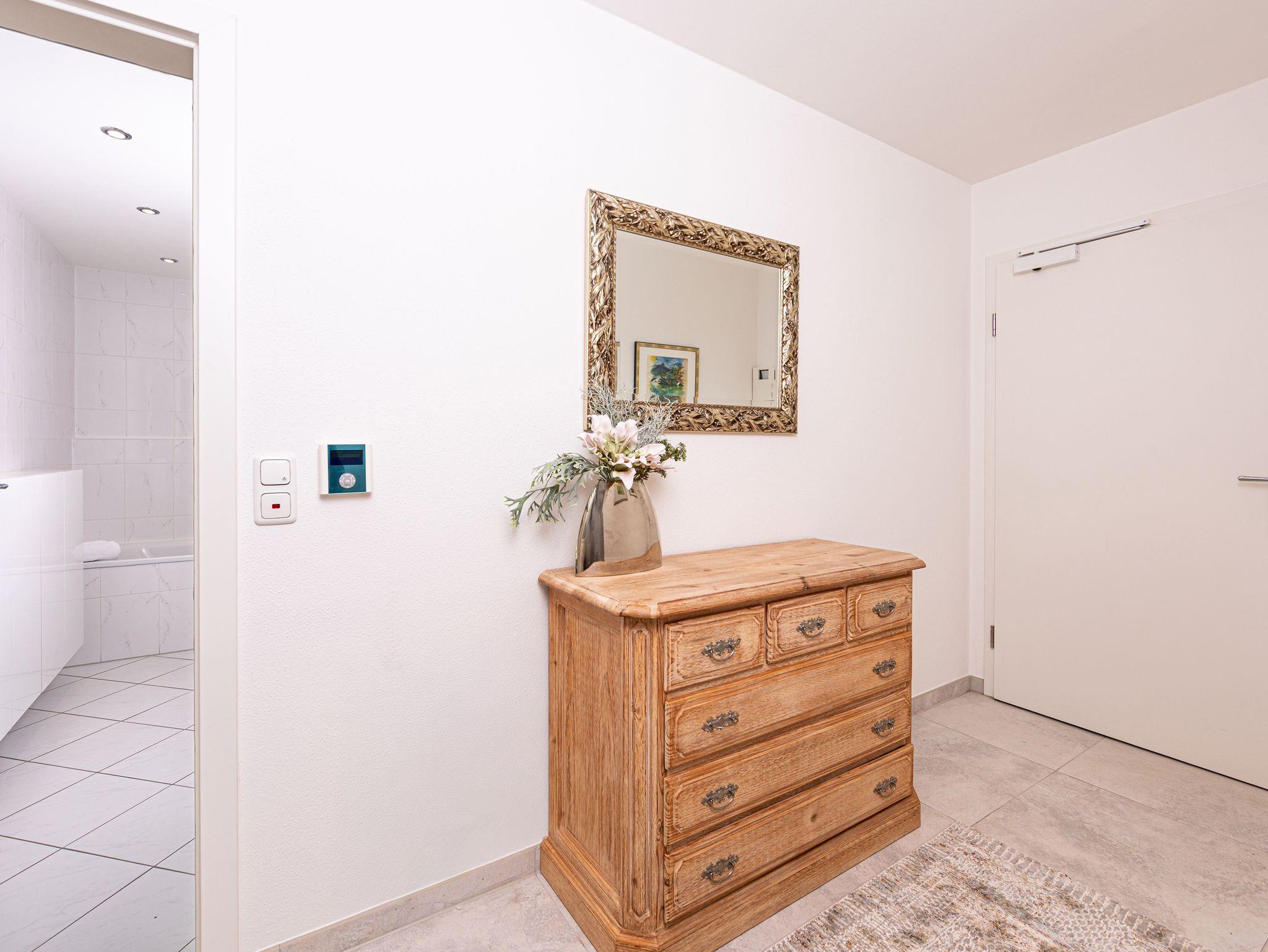 Diese charmante und lichtdurchflutete Ferienwohnung überzeugt mit einer geschmackvollen, modernen Einrichtung und einer rundum gemütlichen Atmosphäre. Ein separates Schlafzimmer sorgt für erholsame Nächte, während der Wohnbereich mit Flachbild-TV zum Entspannen einlädt. Das moderne Badezimmer bietet zeitgemäßen Komfort, und ein praktischer Schrank im Flur schafft zusätzlichen Stauraum.