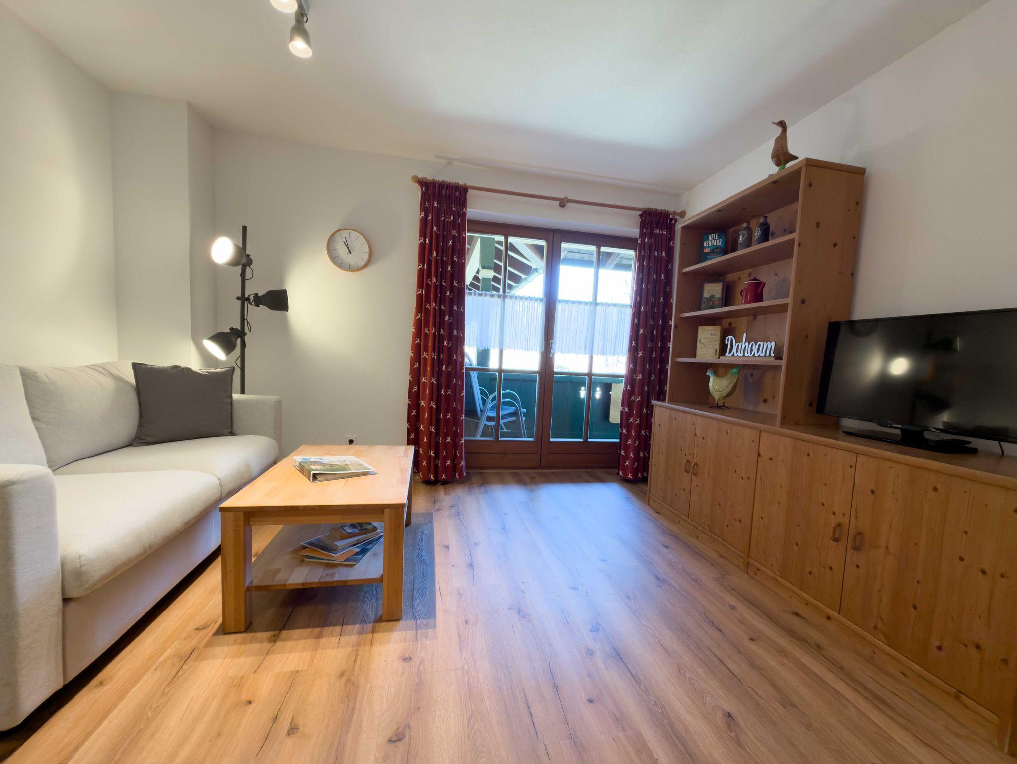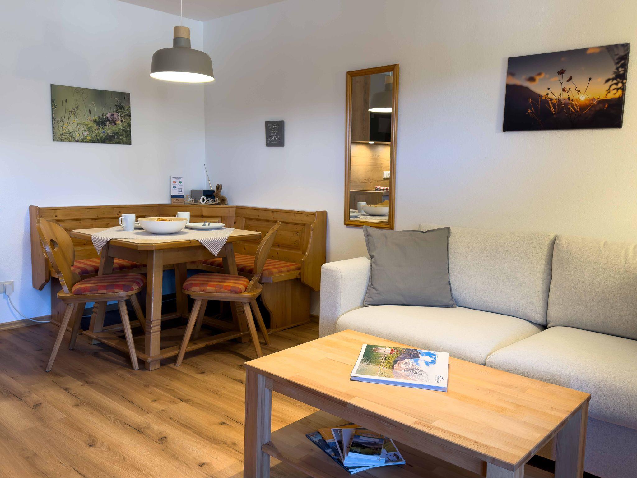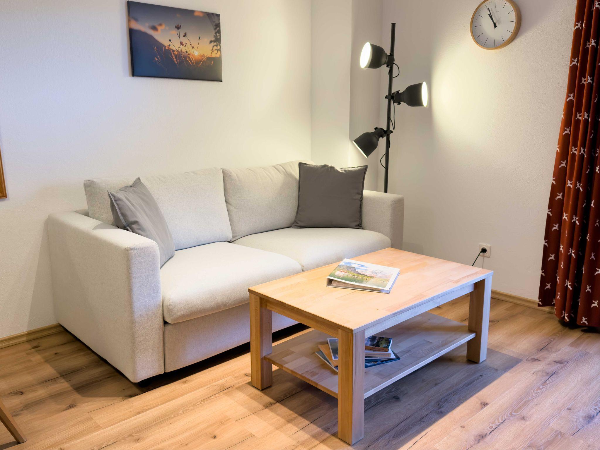 Die komfortable 2-Zimmer-Ferienwohnung 11 befindet sich im ersten Stock des Landhaus Waldhauser und bietet auf 42 m² einen angenehmen Rückzugsort für 1–2 Personen. Der Balkon eröffnet einen schönen Blick auf die umliegende Bergwelt.