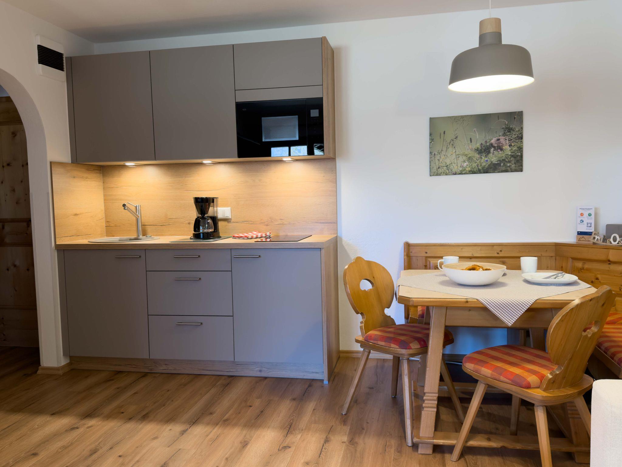 Es erwarten Sie gemütliche, im Landhausstil eingerichtete Ferienwohnungen. Alle Ferienwohnungen haben ein Wohnzimmer mit Sat-TV, eine Küchenzeile mit 2-Plattenkochfeld und Kühlschrank (einzelne Wohnungen verfügen auch über eine separate Küche oder größere Küchenzeile mit Backofen), 1-3 Schlafzimmer und Balkon. Von fast allen Balkonen haben sie einen wunderbaren Blick auf die umgebende Bergwelt. Drei der Ferienwohnungen liegen im Erdgeschoss und haben einen separaten Eingang und eine kleine Terrasse bzw. einen Sitzbereich im Freien.