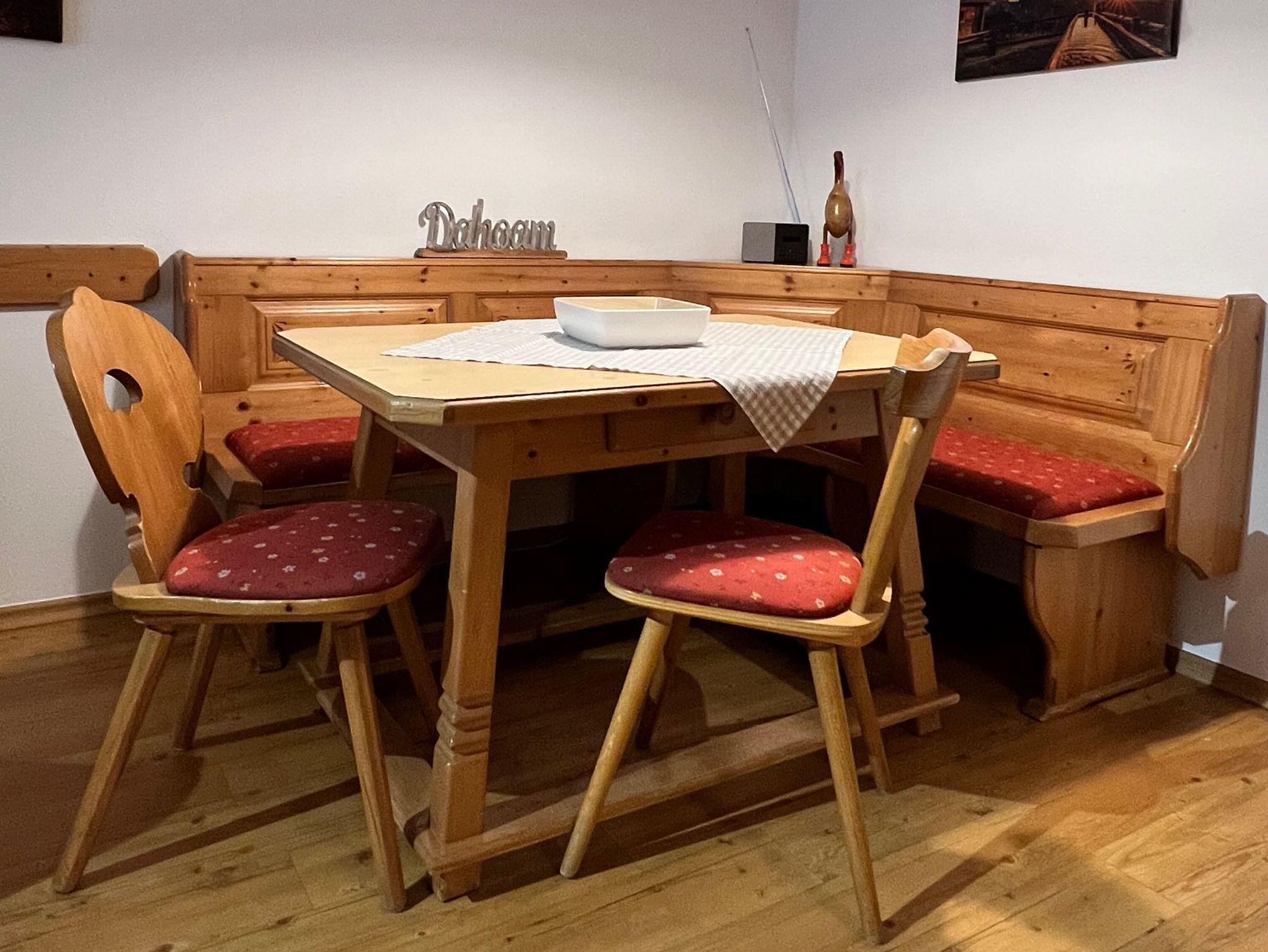 Der Wohnbereich ist mit einer bequemen Sitzgruppe sowie einer gemütlichen Essecke ausgestattet und bietet ausreichend Platz für gemeinsame Mahlzeiten und entspannte Stunden.