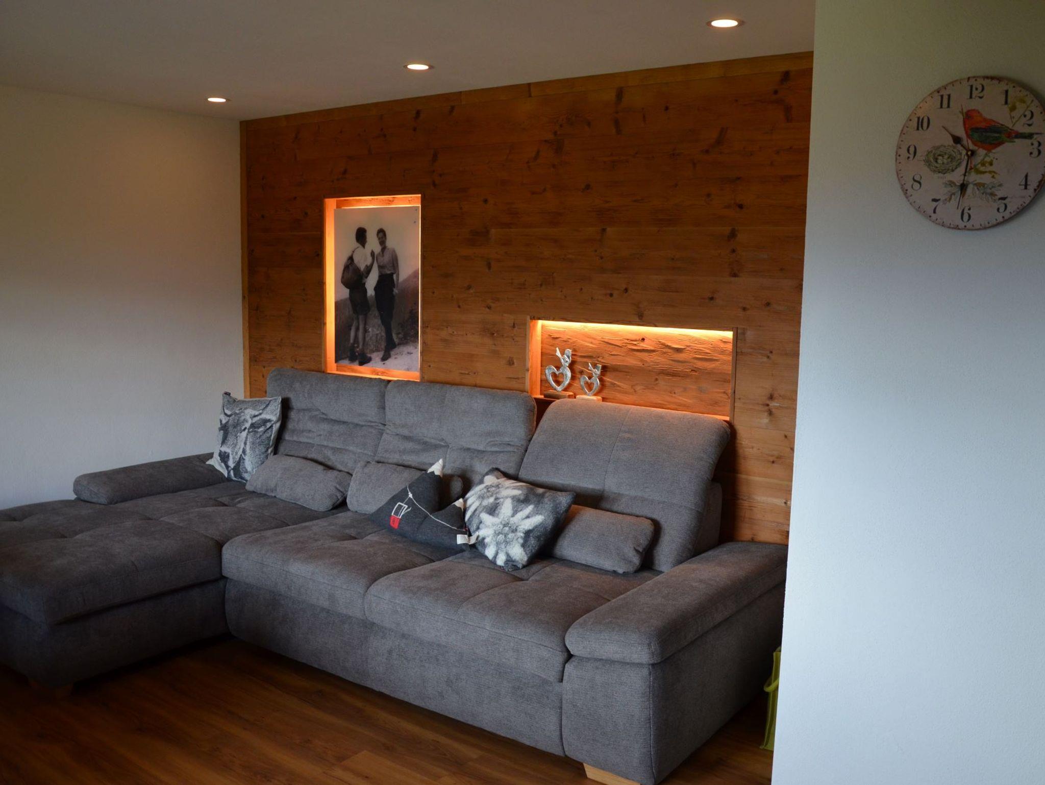 Die neue 70 qm große Ferienwohnung verfügt über 2 Schlafzimmer mit TV und Balkonzugang, ein Bad mit Doppelwaschbecken, Regendusche und Handtuchtrockner. In der voll ausgestatteten Küche ist eine Spülmaschine, Herd mit Backofen, Kühlschrank mit Tiefkühlfach und vieles mehr. Das Wohnzimmer hat eine moderne Sitzecke mit Bergblick, eine Chilllounge und einen weiteren TV, sowie einen Essbereich. Zur Ferienwohnung gehört ein 20 Meter langer Eckbalkon mit Berg und Talblick. Bettwäsche, Handtücher etc. gehören zur Ausstattung.