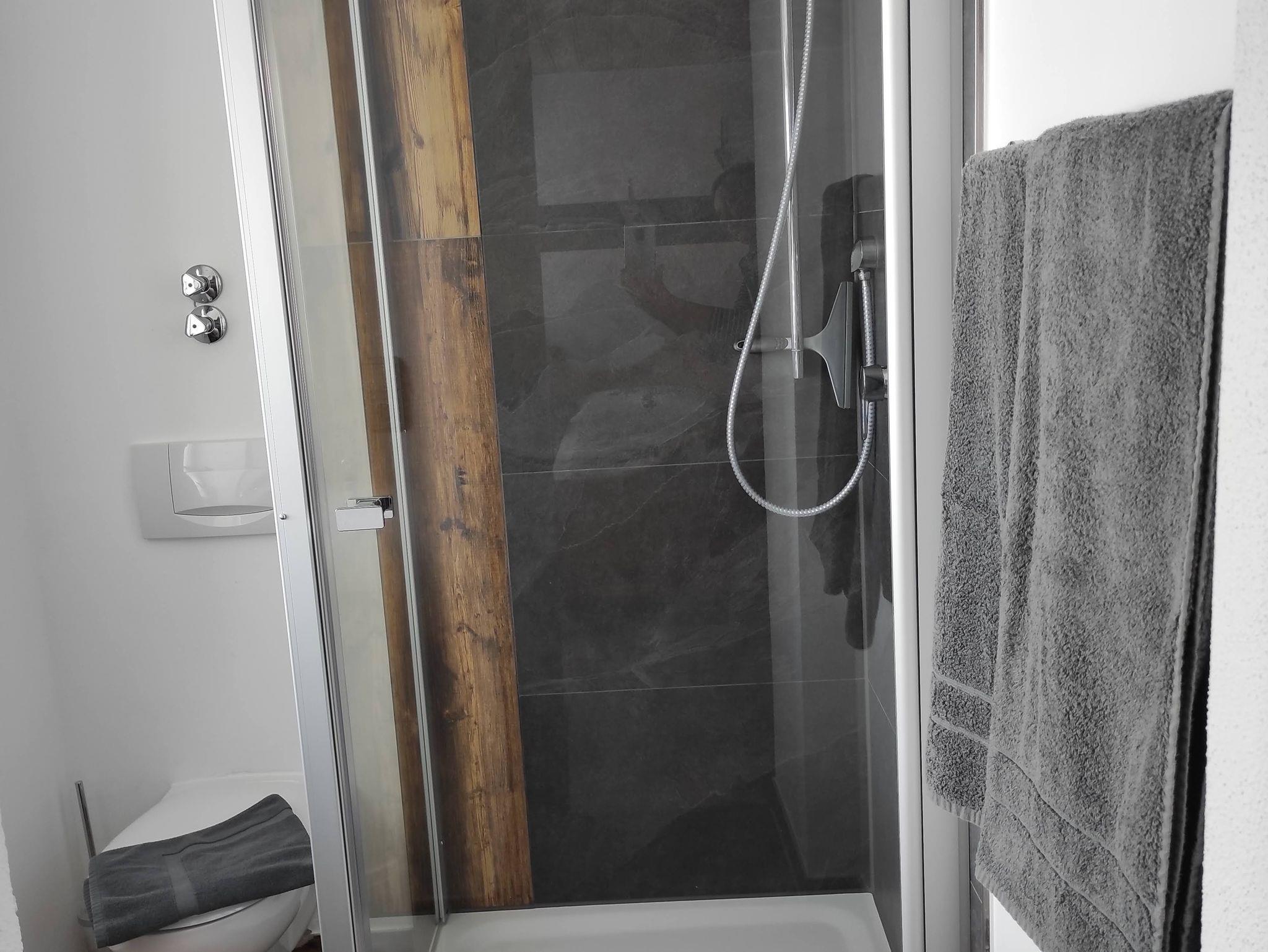 Das gemütliche Schlafzimmer mit komfortablem Boxspringbett lädt zu erholsamen Nächten ein. Das neu renovierte Badezimmer überzeugt mit modernem Design und sorgt für einen frischen Start in den Tag.