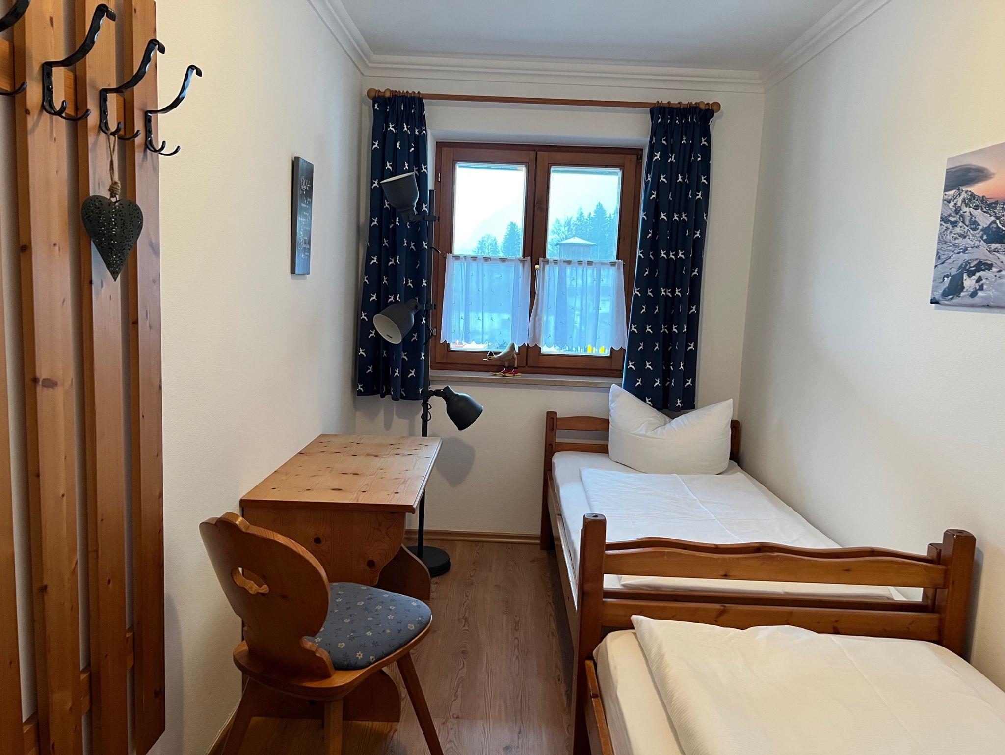 Die Ferienwohnung verfügt über zwei separate Schlafzimmer: ein großes Schlafzimmer mit Doppelbett (180 × 200 cm) sowie ein weiteres Schlafzimmer mit zwei Einzelbetten (90 × 200 cm) und Schreibtisch.