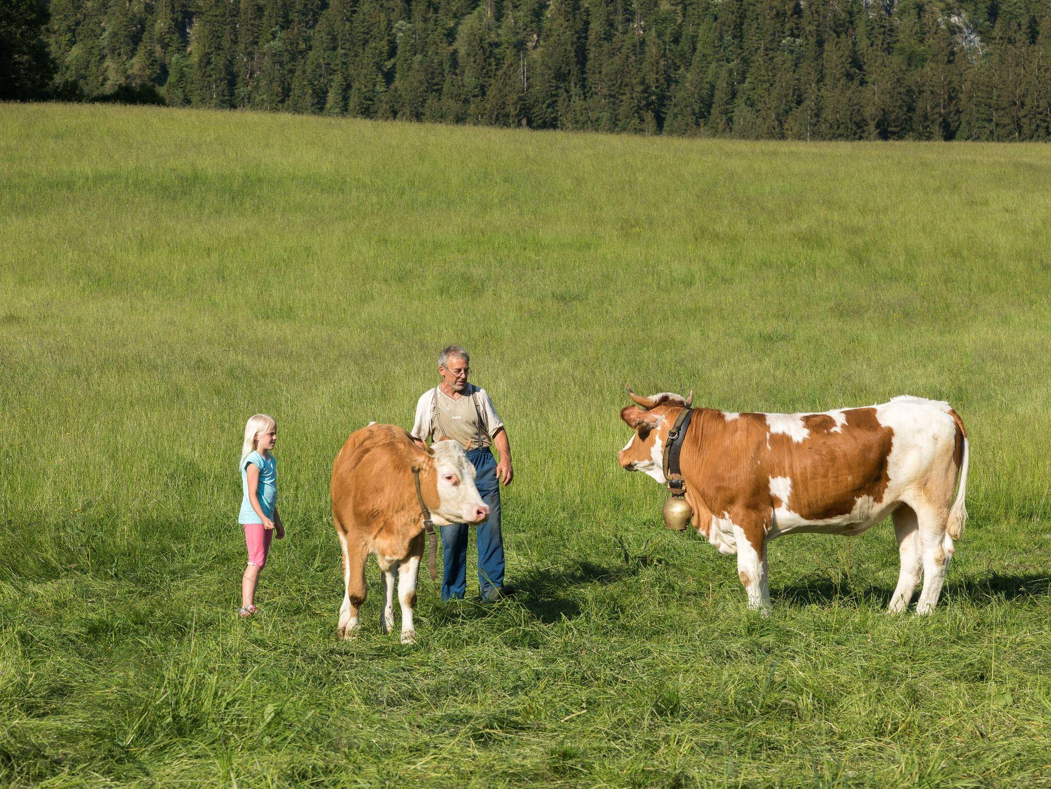 Wunderschön u. südlich, in absoluter Traum - u. Alleinlage im Ortsteil Königssee befindet sich unsere Landwirtschaft. Zu Fuß von uns geht man in 15 Min. zum wunderschönen Königssee. Freier Bergblick zum Watzmann, Jenner, Schönfeldspitze, Grünstein u. Reiteralpe. Auf unserer schönen aktiven Landwirtschaft laden wir Sie und Ihre Kinder zum Urlauben und Entspannen ein. Unsere Tiere auf dem Bauernhof sind Hühner, Mutterkuh - Haltung, Zwergziegen, Zwerghasen und Katze. Mit etwas Glück sieht man des öfteren auch unsere Waldtiere, z. B. Rehe, Hirsche, Fuchs, Habichte, Bussard u. Wildhasen und deshalb wäre ein Fernglas sehr empfehlenswert. Ein großer Spielplatz mit Schaukeln, Rutsche, Tischtennis, Riesentrampolin, Spielturm m. Kletterwand, ein großer Sandspielplatz, Kettcars, Trettraktoren, Gocard usw. steht für die Kinder zur Verfügung. Ein gemütlicher, ausgestatteter Holzpavillon und Sonnenliegen tragen für Ihre Erholung bei. Das Koppensteinlehen ist ein idealer Ausgangspunkt für Wanderungen und Bergtouren in unserem einzigartigen Alpen - Nationalpark Berchtesgaden. Im Winter bei herrlichem Schnee kann man mit dem Schlitten über unsere Wiesen abfahren und einen schönen Schneemann bauen. Für alle, die mehr Lust auf Winter haben, bietet unser Hausberg JENNER viele Aktivitäten an. Die Jennerbahn, der Bäcker, viele Gaststätten, ein Sporteinkaufcenter und der wunderschöne Königssee, sowie die Bob- und Rodelbahn Lotto-Bayern-Eisarena sind gut zu Fuß erreichbar. Wir würden uns sehr freuen, wenn wir Sie auf unserem schönen Koppensteinlehen herzlich willkommen heißen dürfen. Haustiere sind bei uns nicht erlaubt.