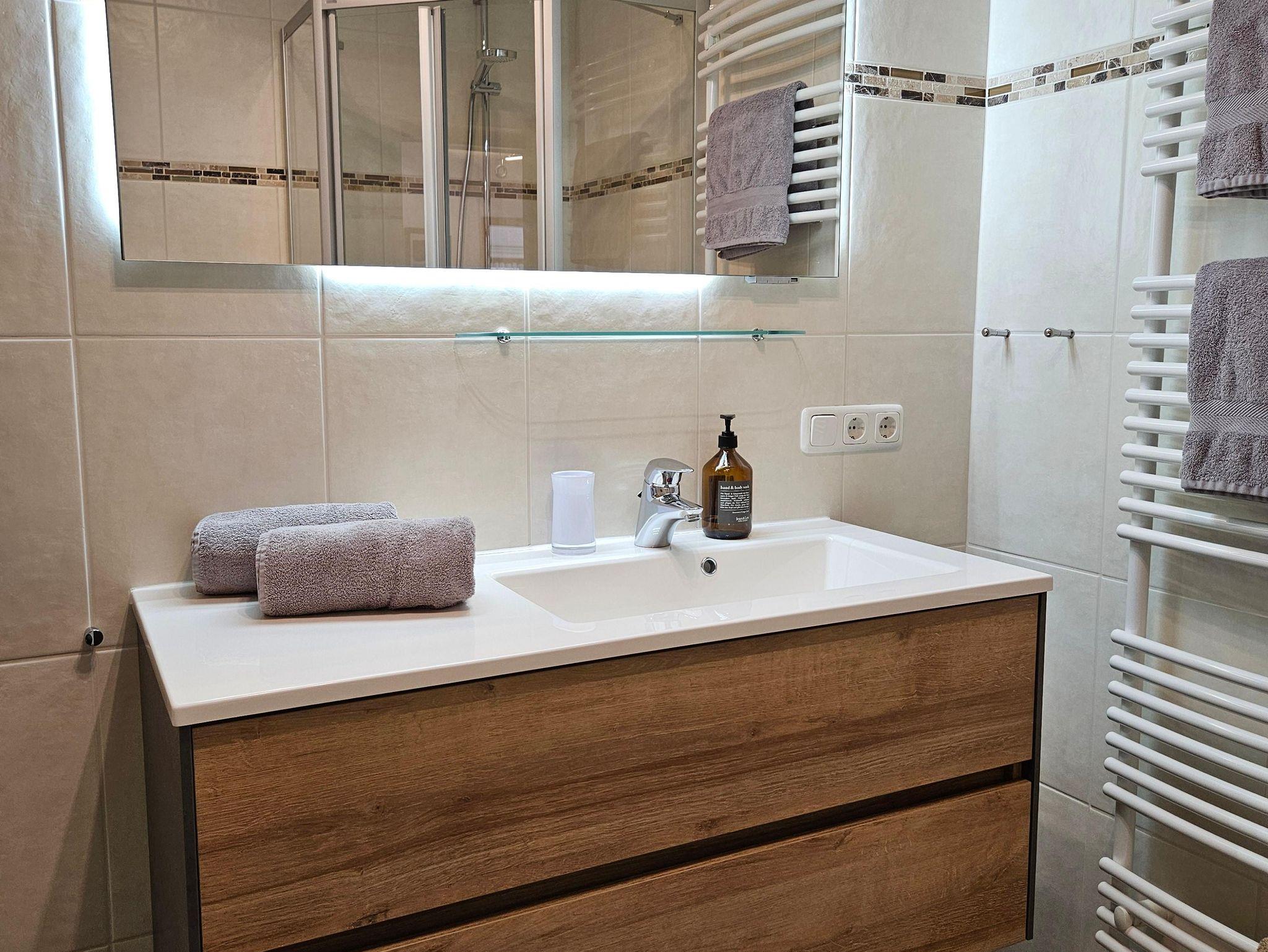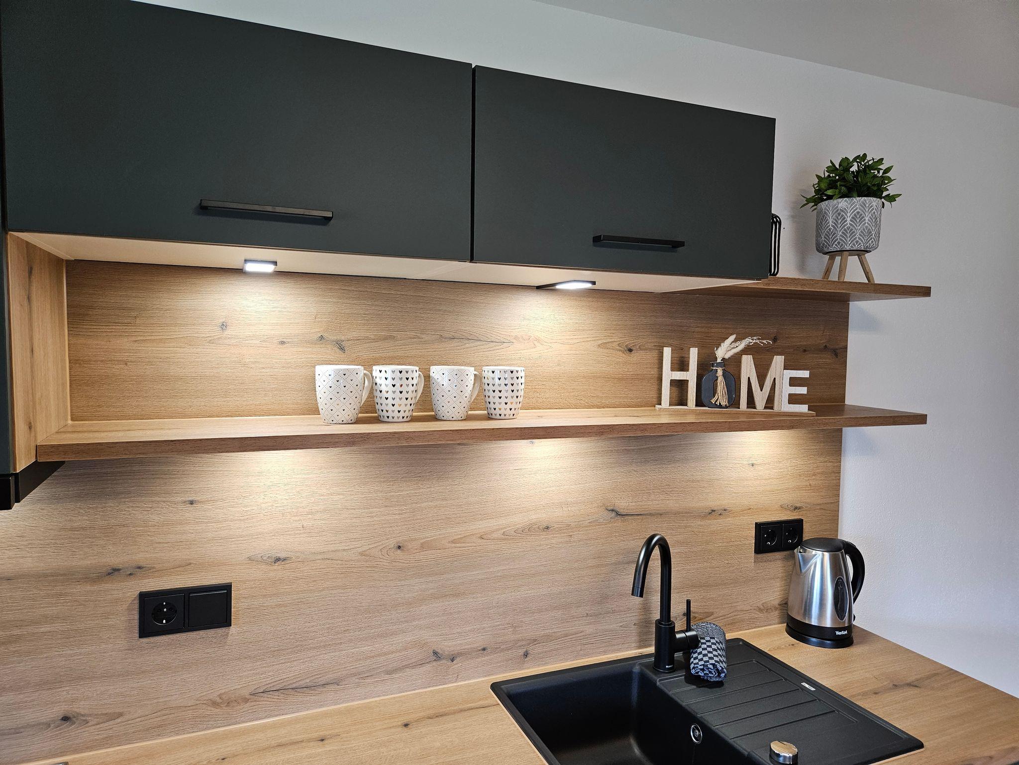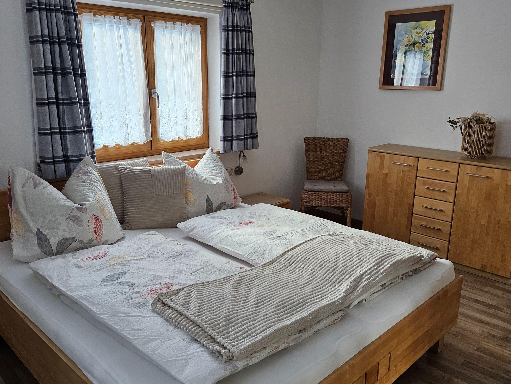 Komfortable neu eingerichtete Ferienwohnung in gehobener Ausstattung bietet Platz für 2-4 Personen.Die Wohnung teilt sich auf in einen Flur, zwei seperate Schlafzimmer je mit Doppelbett, Wohnraum mit Küchenzeile, Bad mit Dusche und WC und Balkon. Das Bad ist ausgestattet mit einem Waschtisch, Föhn, Handtuchtrockner, Toilettenartikel, Handtücher und vielen Ablagemöglichkeiten.Im geräumigen Wohnraum befindet sich eine Couch und Sessel mit Beistelltisch, TV, Stereoanlage, Essgruppe und eine Küchenzeile mit Spüle, Spülmaschine, 4-Plattenherd mit Backofen, Kühlschrank mit Gefrierfach, Kaffeemaschine, Wasserkocher, Eierkocher und Toaster. Schlafzimmer Nr. 1 inkl. Bettwäsche, Spiegelschrank, Radiowecker. Schlafzimmer Nr. 2 inkl. Bettwäsche, Kommode, TV. Ein Babybett für Kleinkinder kann auf Anfrage zur Verfügung gestellt werden.
