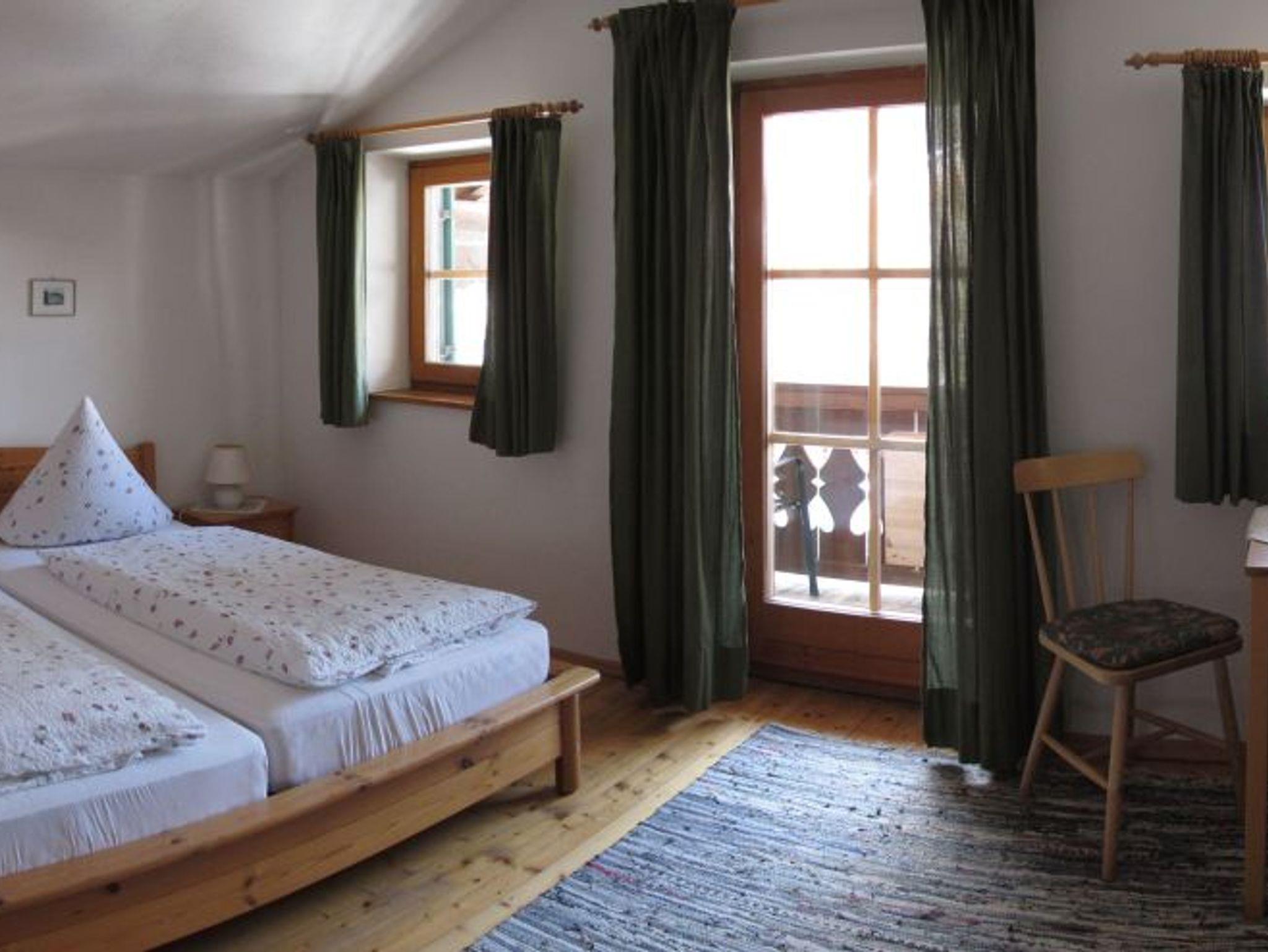 Die Ferienwohnung bietet Platz auf 50 qm und liegt im Dachgeschoß. Sie ist ausgestattet mit einem separaten Schlafzimmer, einem Wohnzimmer mit Eckbank, Sitzgruppe, TV, sowie kostenfreiem Internet. Im dazwischenliegendenFlur befindet sich die Küche, von wo aus man auch das Bad mit Badewanne/WC erreicht. Sowohl vom Ost-Balkon als auch vom West-Balkon aus haben Sie einen wunderbaren Blick auf die umliegende Bergwelt.
