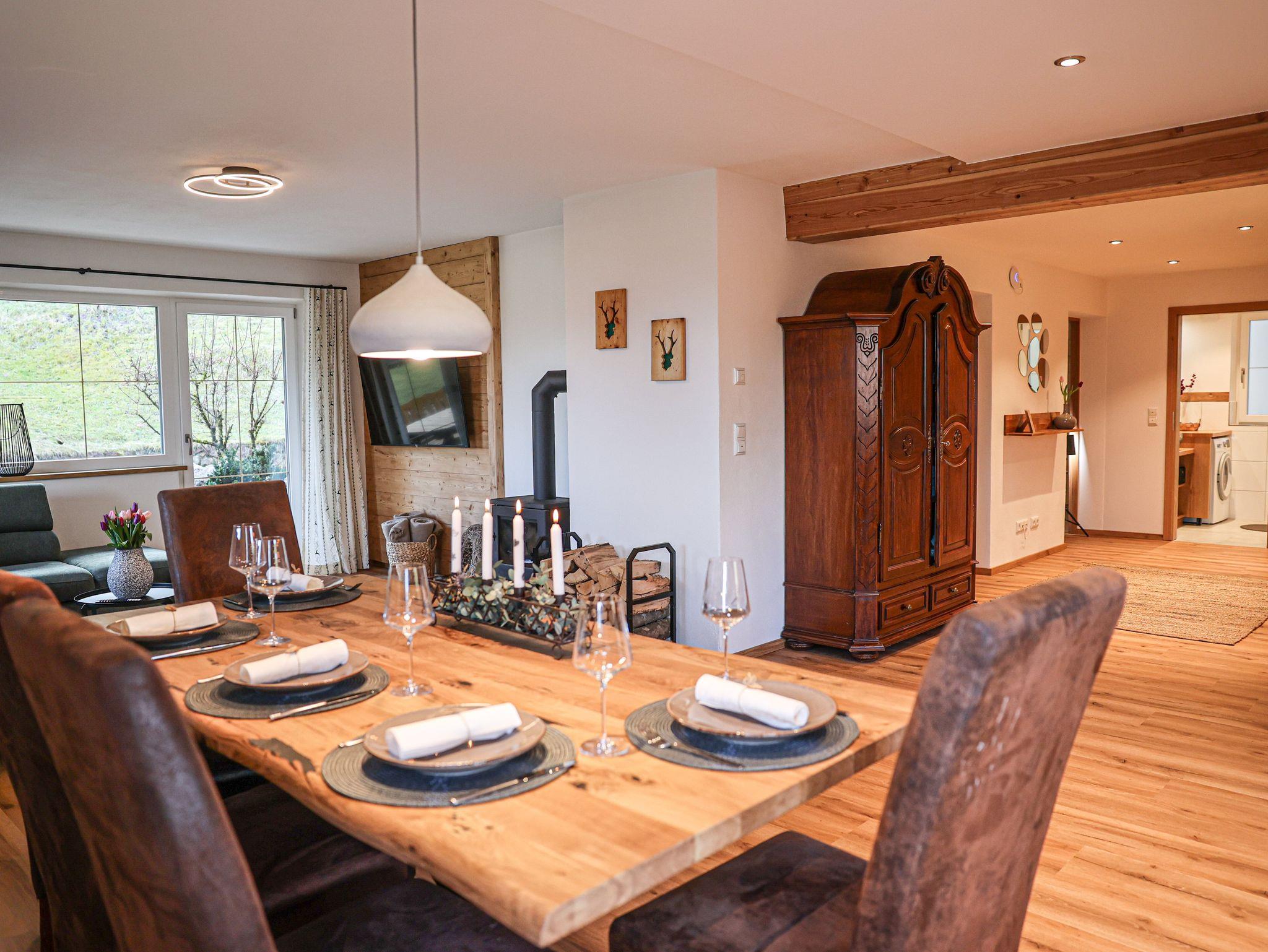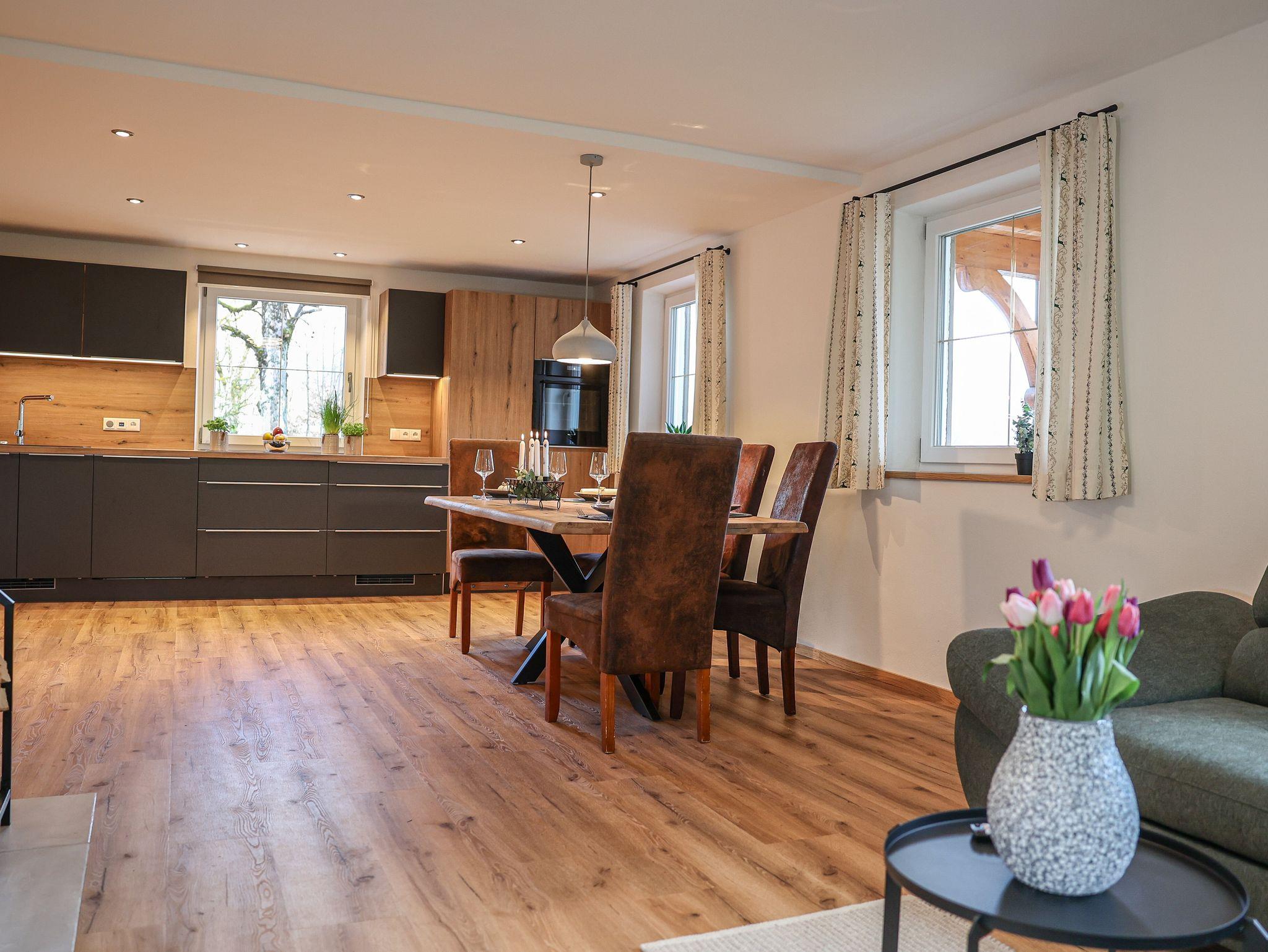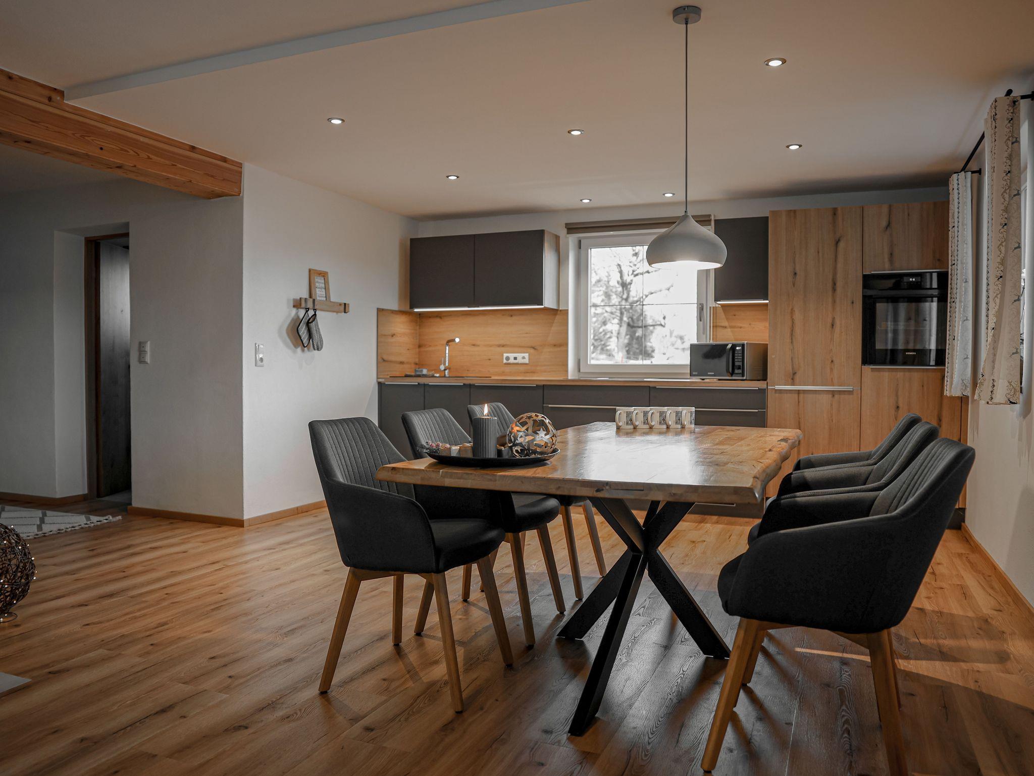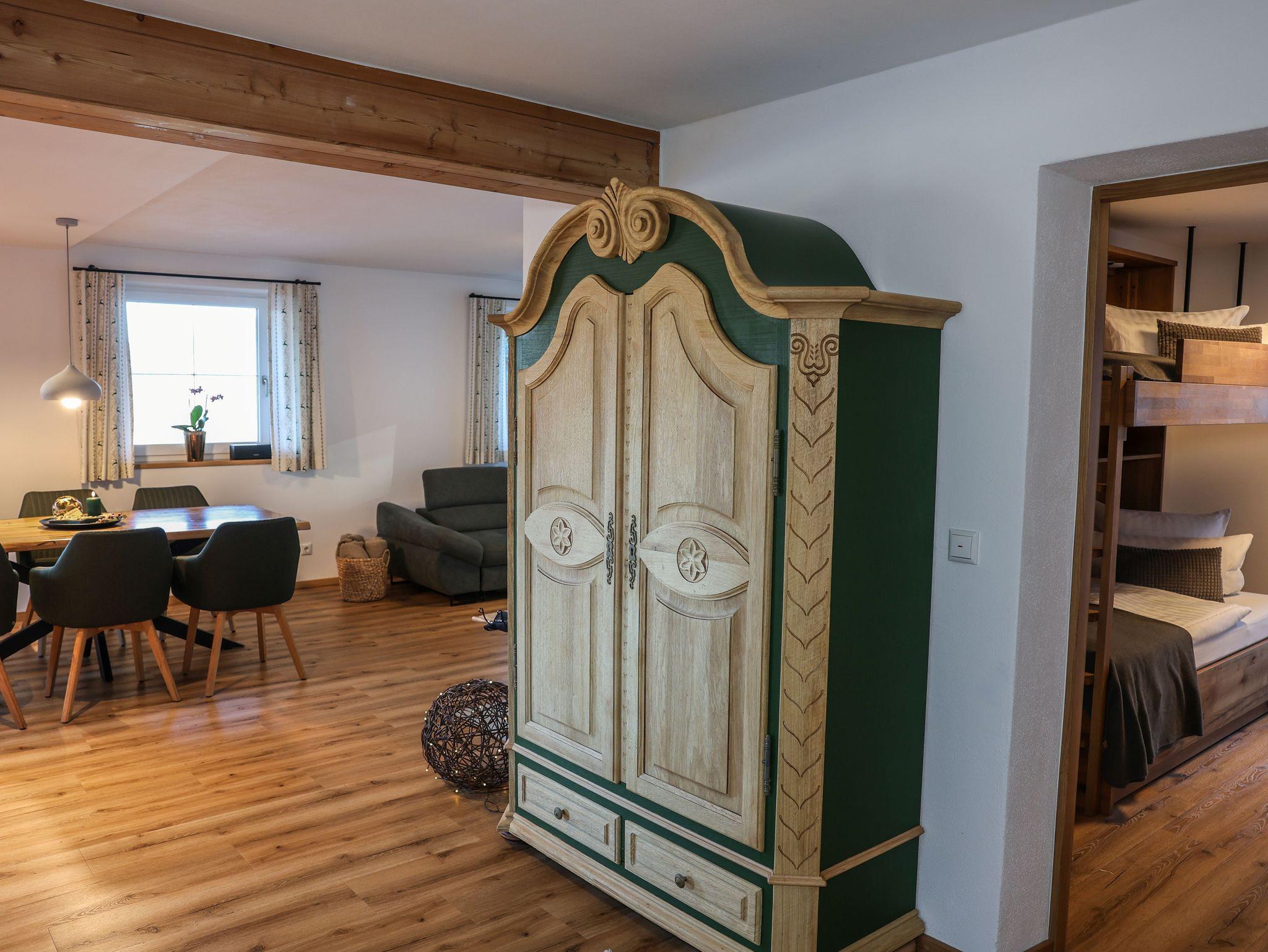 Unsere 2024 komplett neu errichtete Ferienwohnung Söldenköpfl-Blick bietet Platz auf 80 qm und ist ausgestattet mit 2 Schlafzimmern ( 1x mit Doppelbett und 1x mit Einzelbetten im Etagenbett) mit jeweils eigenen TV-Geräten, zwei Bädern (einmal mit Dusche, einmal mit Badewanne), Gäste-WC, einer großen Wohnküche mit Sofalandschaft, extra großem TV und einem Schwedenofen, einer gut ausgestatteten Küchenzeile sowie einem Essbereich. Auf der großzügig möblierten Terrasse (20 qm) ist auch eine Grillmöglichkeit vorhanden. Kinder sind bei uns herzlich willkommen! Unsere Ferienwohnung ist mit 5***** Sternen des DTV (Deutscher Tourismusverband) klassifiziert.