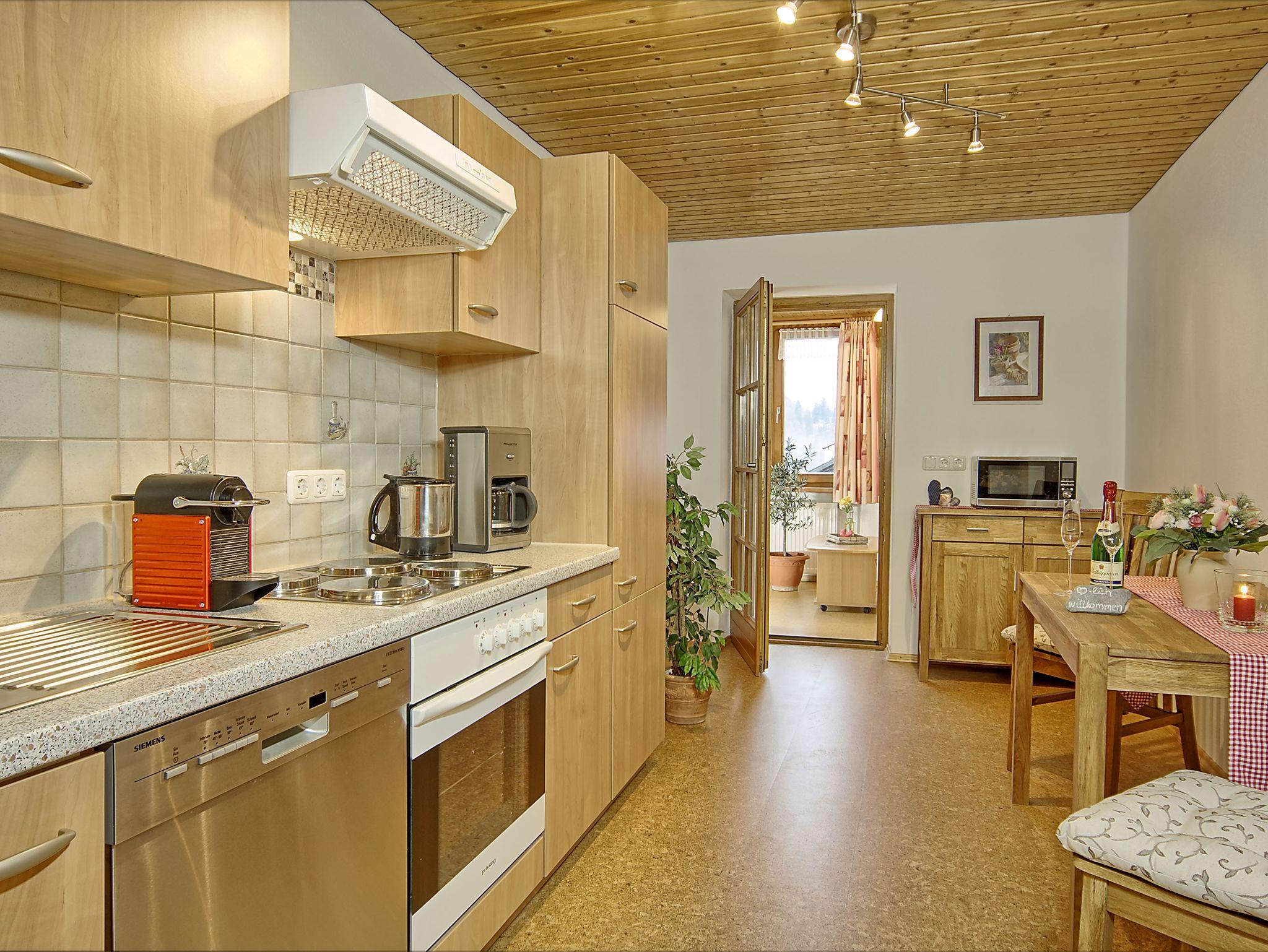 Die helle Wohnung erfreut unsere Gäste mit einem Wintergarten, von dem Sie ebenfalls einen herrlichen Blick auf unsere Bergwelt haben. Zur nespresso-Maschine erhält jeder Gast eine Mischung aus verschiedenen Kapseln. Das neue Bad verwöhnt Sie mit Bio-Aromadüften. Unsere Ferienwohnungsanlage/unser Appartement wurde nach dem Klassifizierungssystem des Deutschen Tourismus Verbandes als Ferienwohnung/Ferienhaus mit 4 Sternen klassifiziert.