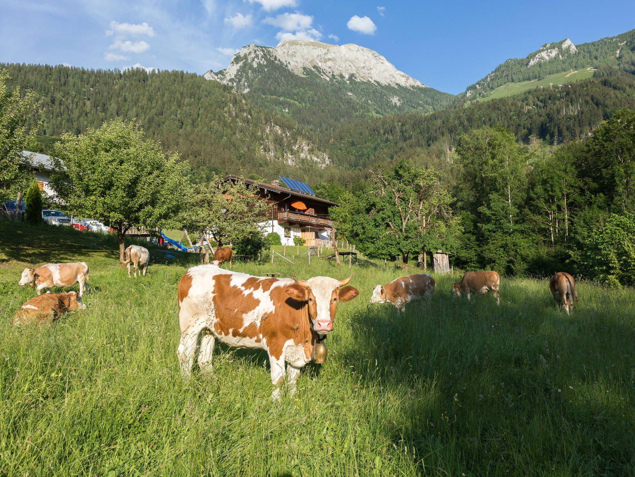 Wunderschön u. südlich, in absoluter Traum - u. Alleinlage im Ortsteil Königssee befindet sich unsere Landwirtschaft. Zu Fuß von uns geht man in 15 Min. zum wunderschönen Königssee. Freier Bergblick zum Watzmann, Jenner, Schönfeldspitze, Grünstein u. Reiteralpe. Auf unserer schönen aktiven Landwirtschaft laden wir Sie und Ihre Kinder zum Urlauben und Entspannen ein. Unsere Tiere auf dem Bauernhof sind Hühner, Mutterkuh - Haltung, Zwergziegen, Zwerghasen und Katze. Mit etwas Glück sieht man des öfteren auch unsere Waldtiere, z. B. Rehe, Hirsche, Fuchs, Habichte, Bussard u. Wildhasen und deshalb wäre ein Fernglas sehr empfehlenswert. Ein großer Spielplatz mit Schaukeln, Rutsche, Tischtennis, Riesentrampolin, Spielturm m. Kletterwand, ein großer Sandspielplatz, Kettcars, Trettraktoren, Gocard usw. steht für die Kinder zur Verfügung. Ein gemütlicher, ausgestatteter Holzpavillon und Sonnenliegen tragen für Ihre Erholung bei. Das Koppensteinlehen ist ein idealer Ausgangspunkt für Wanderungen und Bergtouren in unserem einzigartigen Alpen - Nationalpark Berchtesgaden. Im Winter bei herrlichem Schnee kann man mit dem Schlitten über unsere Wiesen abfahren und einen schönen Schneemann bauen. Für alle, die mehr Lust auf Winter haben, bietet unser Hausberg JENNER viele Aktivitäten an. Die Jennerbahn, der Bäcker, viele Gaststätten, ein Sporteinkaufcenter und der wunderschöne Königssee, sowie die Bob- und Rodelbahn Lotto-Bayern-Eisarena sind gut zu Fuß erreichbar. Wir würden uns sehr freuen, wenn wir Sie auf unserem schönen Koppensteinlehen herzlich willkommen heißen dürfen. Haustiere sind bei uns nicht erlaubt.