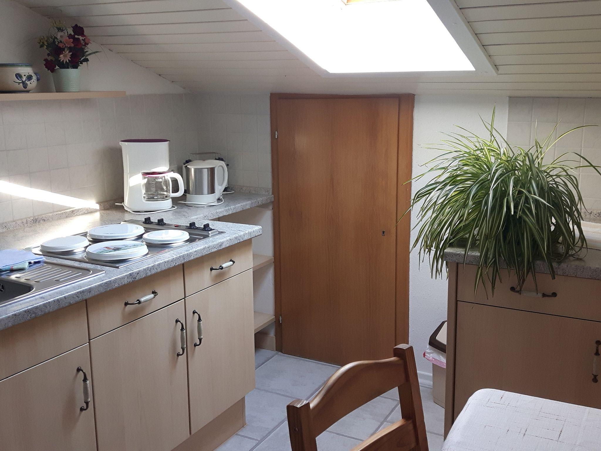 Die Nichtraucher-Ferienwohnung befindet sich im 1. Stock und bietet Platz auf 36 qm. Sie verfügt über ein separates Schlafzimmer, einen Wohnbereich mit Kühlschrank, Mikrowelle, 2-Platten Elektroherd, Essecke, Sitzgruppe, HD-TV, Radio, Bad mit Dusche/WC, Handtücher, Fön und Toilettenartikel sowie einen Balkon mit Balkonmöbel.