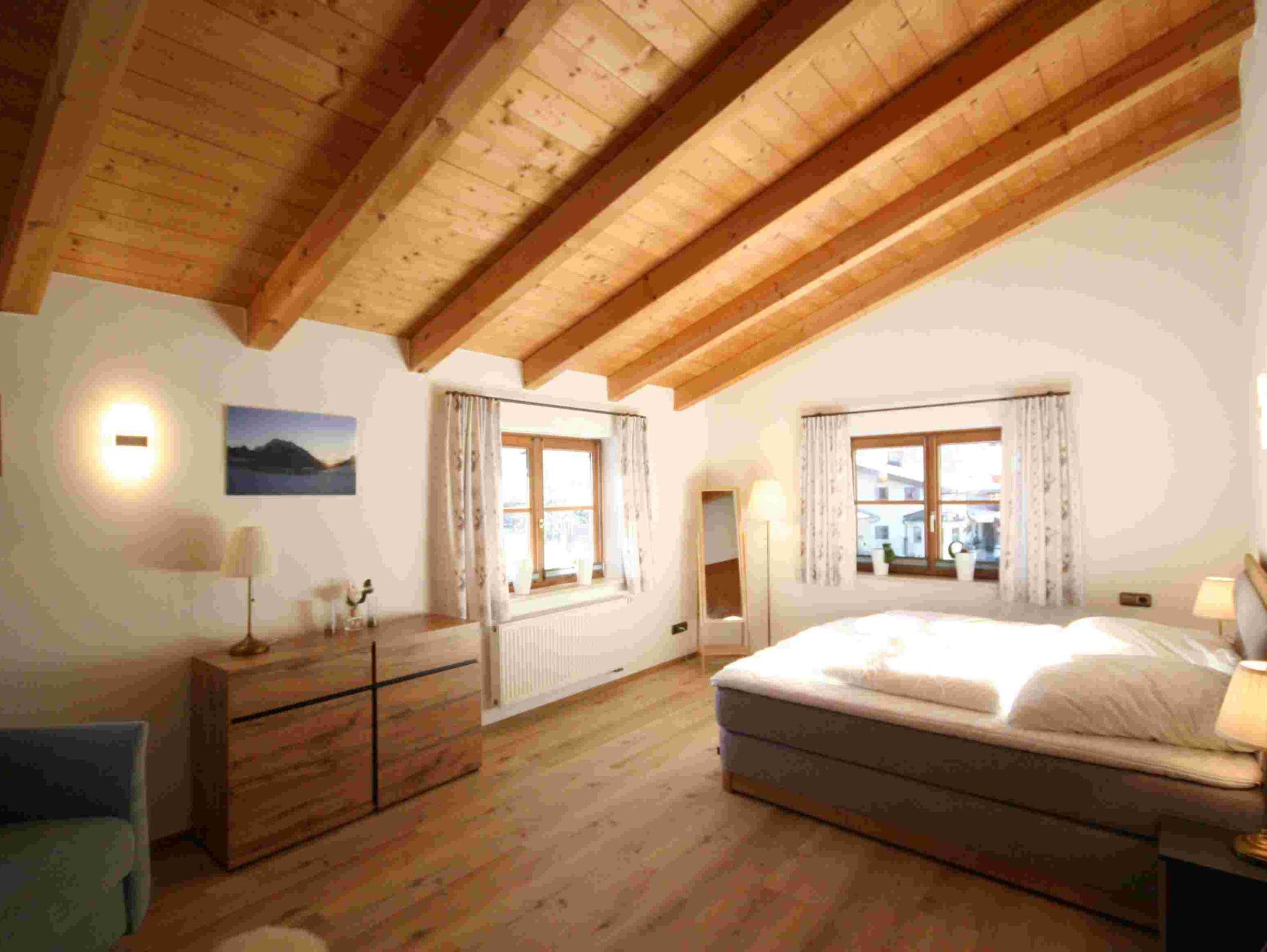 Die neue Küche mit Vollausstattung bietet alle Möglichkeiten einer hochwertigen Selbstverpflegung. Im ersten Stock erwartet Sie ein geräumiges Schlafzimmer mit Boxspringbett. Ein Sessel mit Bettfunktion und Federkernmatratze bietet die Möglichkeit eines zusätzlichen Schlafplatzes.