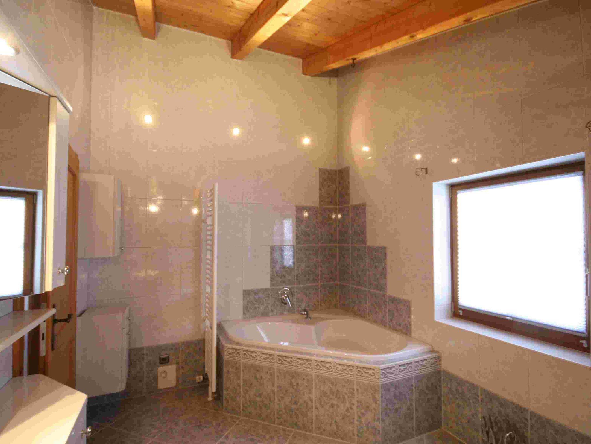 Das geräumige Badezimmer ist mit sparater Dusche und Eckbadewanne ausgestattet.