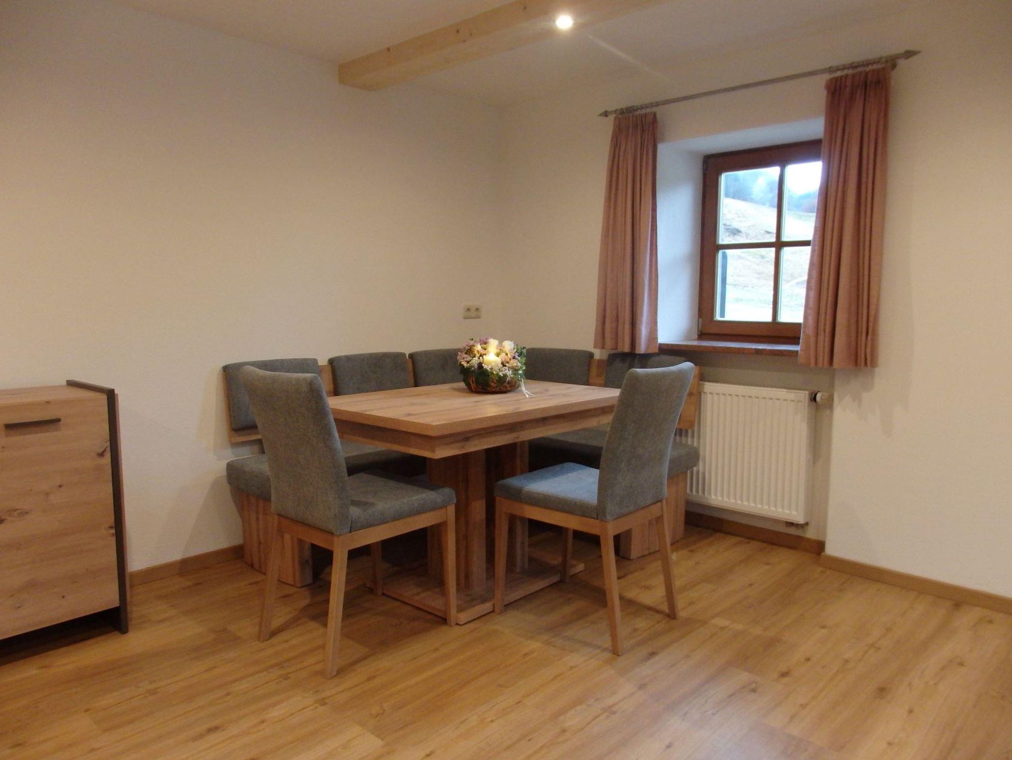 Unsere neu renovierte und eingerichtete Ferienwohnung im 1. Obergeschoss lädt zum gemütlichen Entspannen und Erholen ein. Sie wohnen auf ca. 68 qm mit freiem Blick auf die umliegende Bergwelt (Watzmann, Hochkalter, Jenner, Grünstein). Der liebevoll eingerichtete Wohn- und Essbereich mit integrierter Küchenzeile lädt wunderbar zum Verweilen ein. Der Wohnhbereich verfügt außerdem über ein Sofa mit Ausziehmöglichkeit (Ausziehcouch und Einzelbett) und Kabel-TV. Die Küche ist voll ausgestattet und verfügt neben einem Kühlschrank, Geschirrspüler, Backofen, Cerankochfeld auch über eine Kaffeemaschine, einen Toaster, Wasserkocher und vieles mehr. Das Schlafzimmer verfügt über ein Doppelbett 1,80 m Breite und ein zusätzliches Einzelbett mit 90 cm Breite. Die Ferienwohnung hat einen großzügigen Balkon mit traumhaften, unverbauten Bergblick. Selbsverständlich ist der direkt am Haus verfügbare Parkplatz und das W-Lan kostenlos. Es sind keine Haustiere erlaubt.