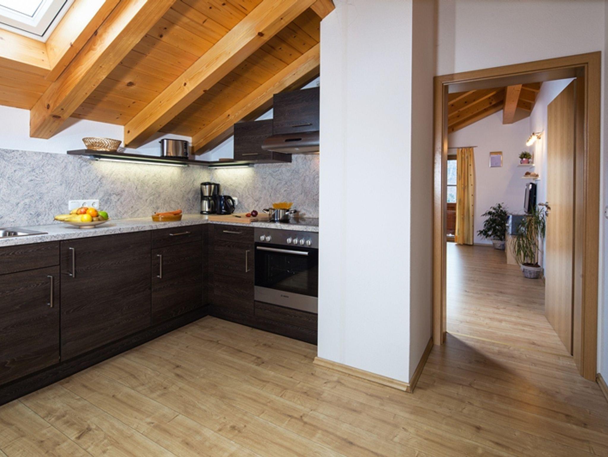 Die Ferienwohnung befindet sich im Dachgeschoss mit 2 Schlafzimmer, Küche, Wohn- und Esszimmer, Dusche und WC sowie Balkon mit traumhaften Ausblick.