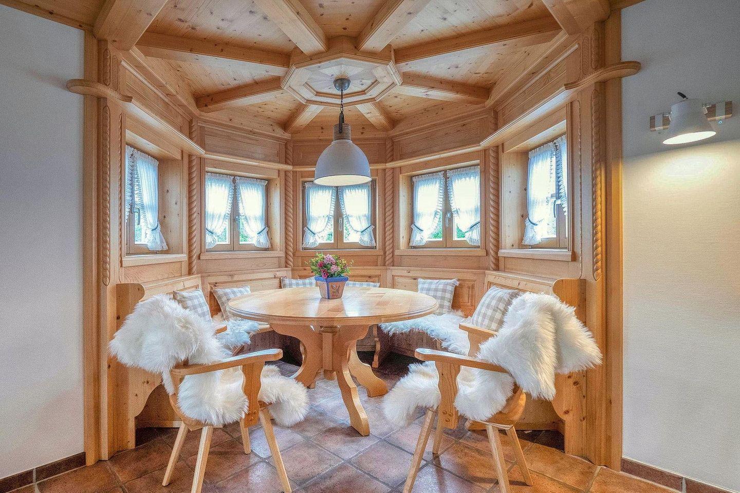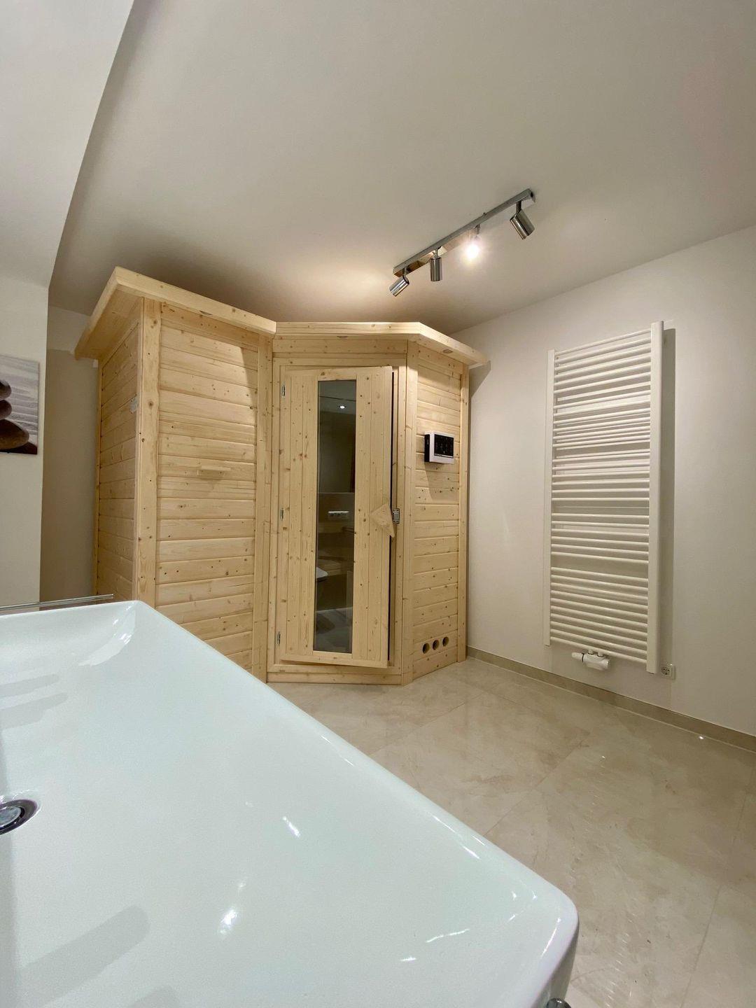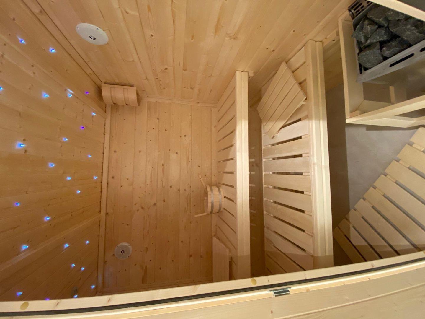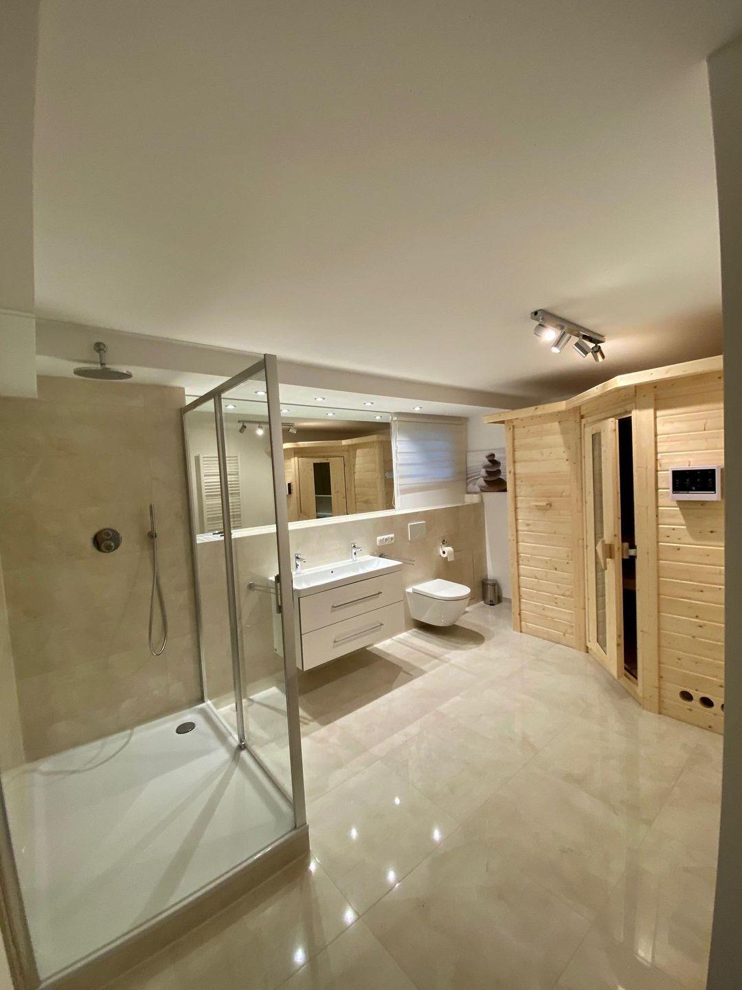 Ein besonderes Highlight ist der private Wellnessbereich mit Sauna und Regendusche – ein Ort zum Abschalten nach Wanderungen, Skitagen oder intensiven Arbeitstagen bei einer Workation in den Alpen. Ein separater Arbeitsplatz sowie schnelles Internet machen längere Aufenthalte besonders angenehm.