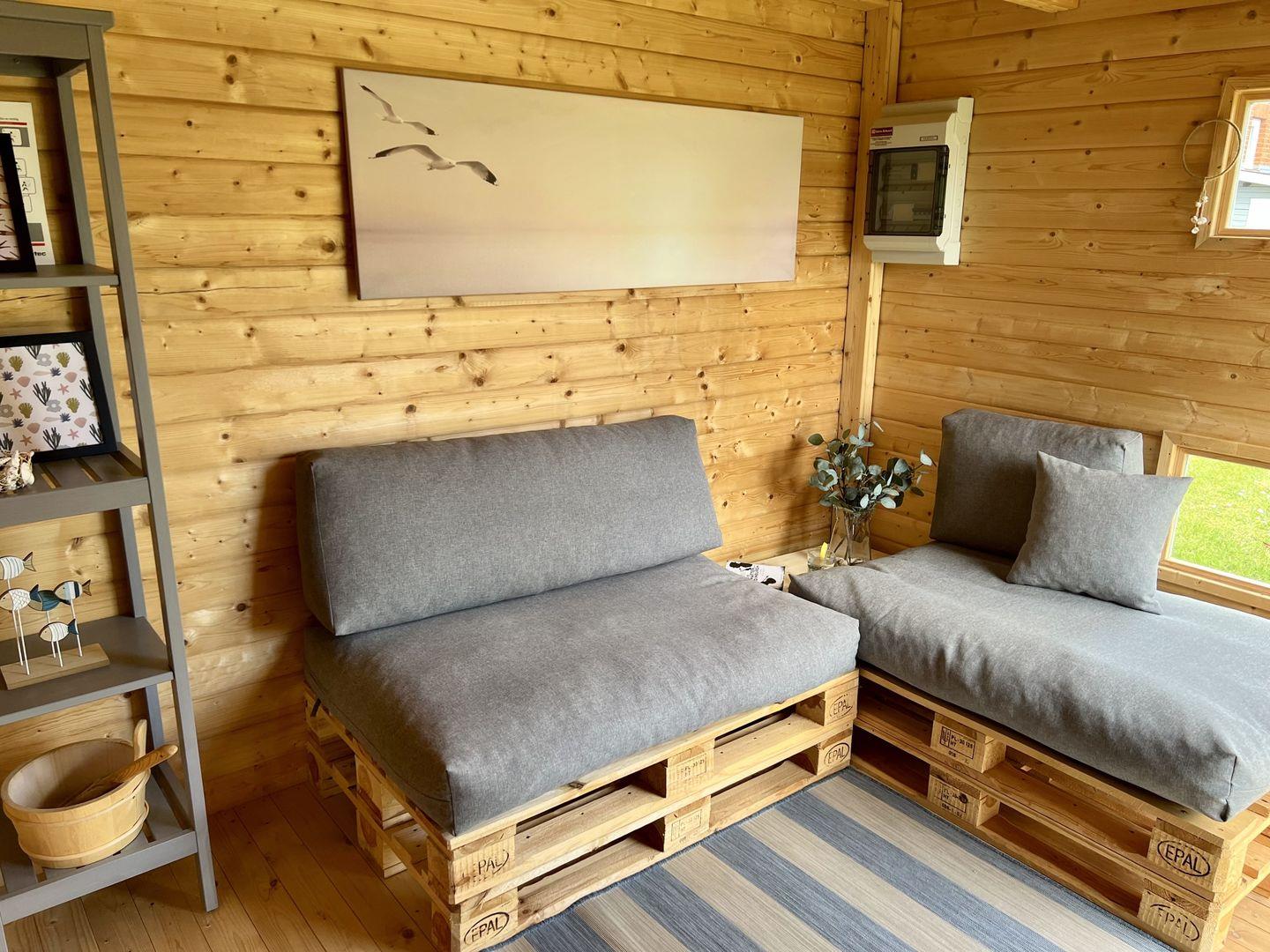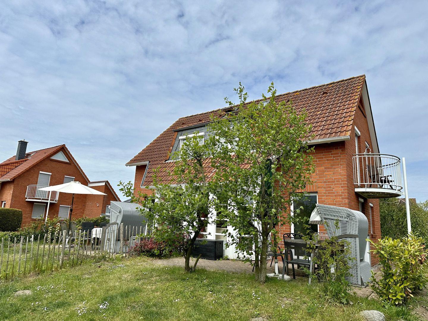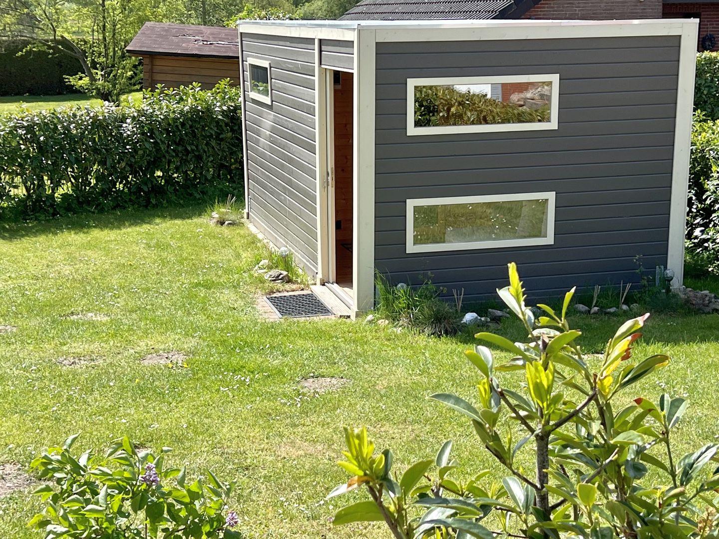 Im großzügigen Garten erwartet euch eine möblierte Terrasse mit Strandkorb, auf der ihr den Tag mit einem Frühstück in der Morgensonne beginnen oder bei einem Glas Wein ausklingen lassen könnt. Hier findet ihr Raum für Ruhe, Natur und echtes Urlaubsgefühl. Außerdem steht ein Saunahaus zur gemeinschaftlichen Nutzung mit der Nachbar-Haushälfte Seehund II zur Verfügung.