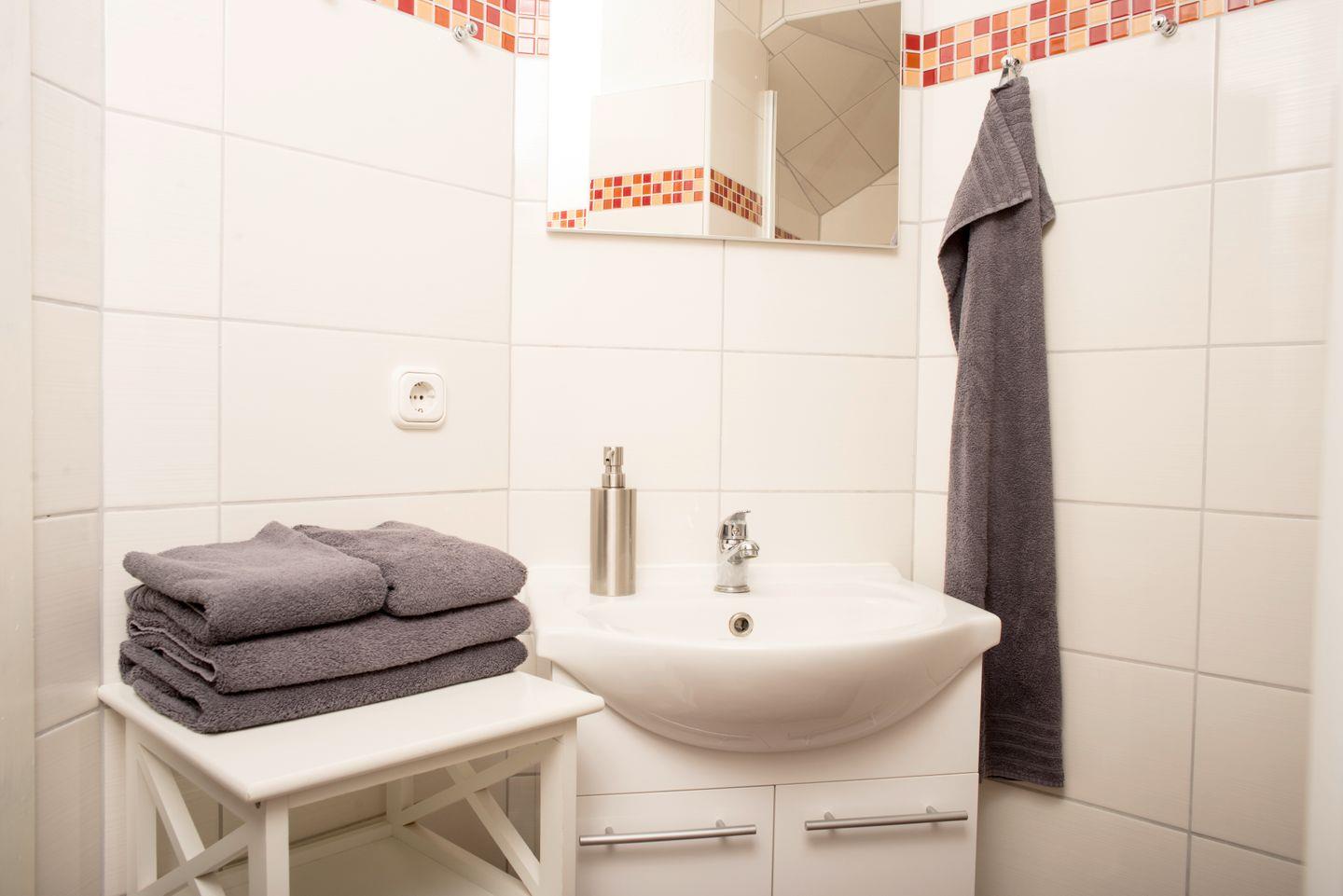 Badezimmer: Dusche / Waschbecken / WC / Föhn