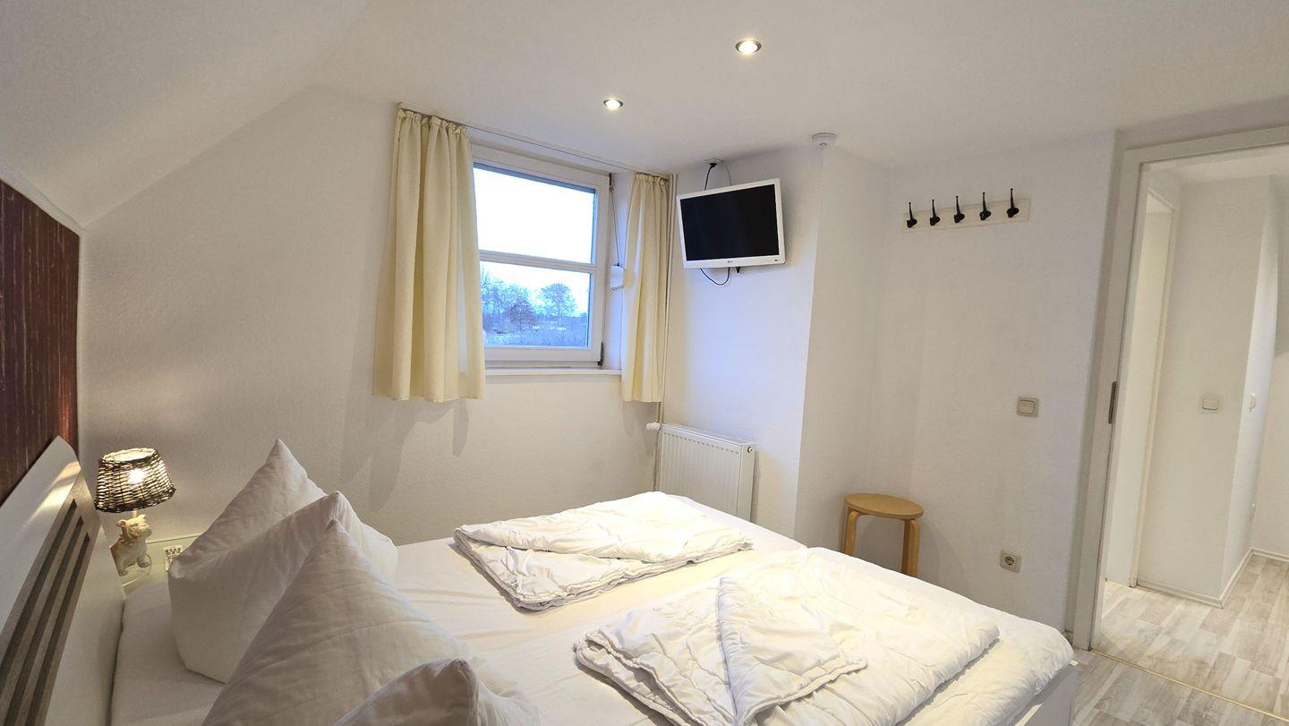 Schlafzimmer I: Doppelbett / Schrank / Fernseher