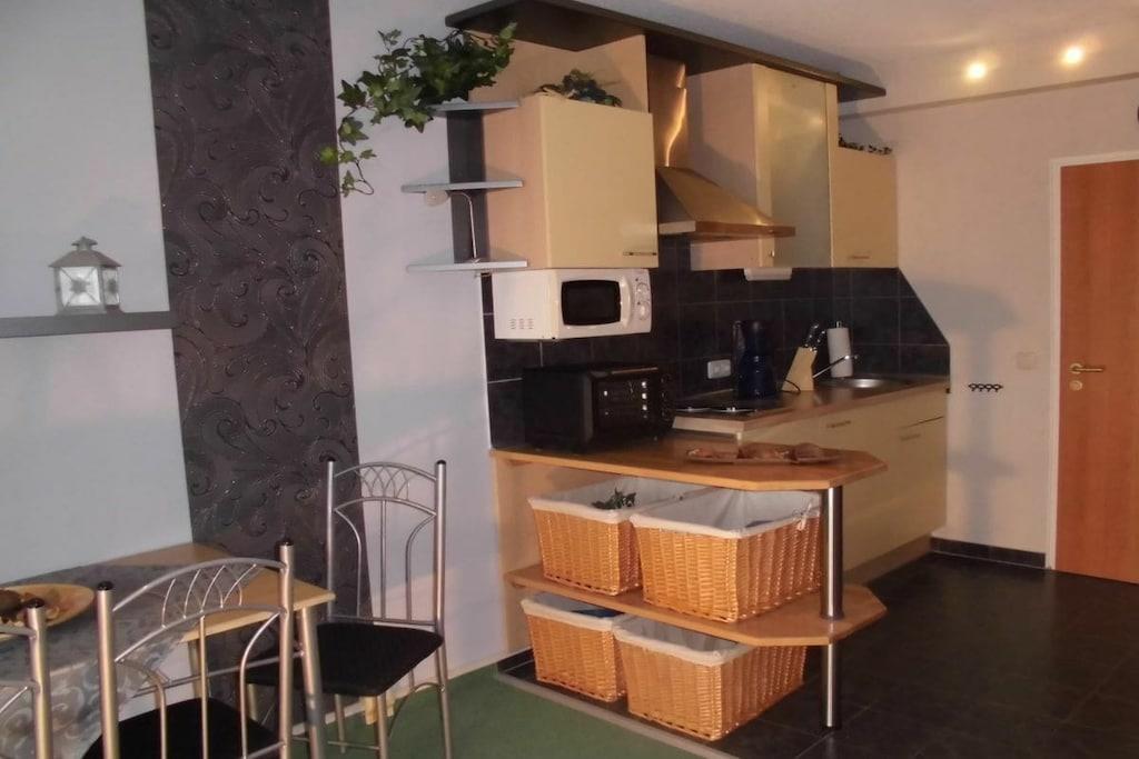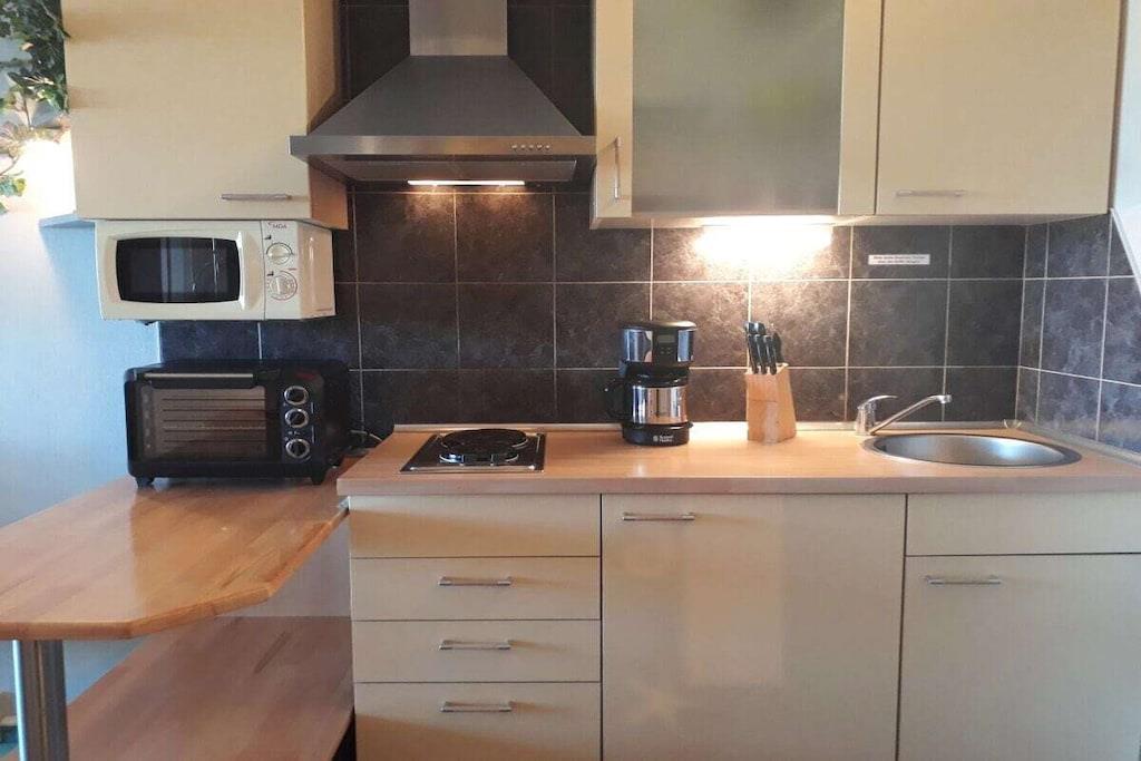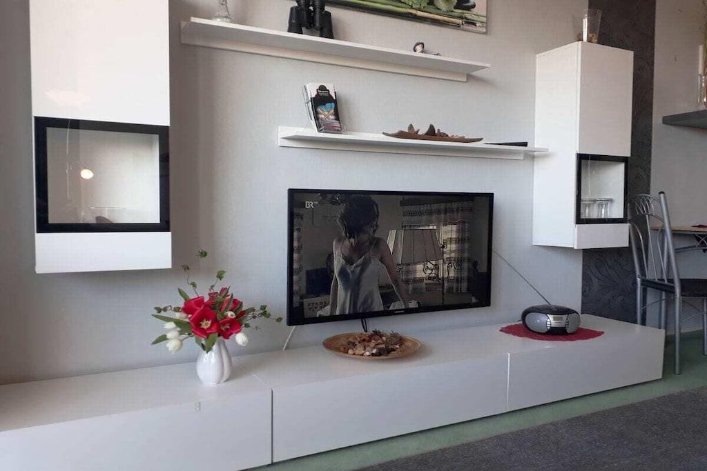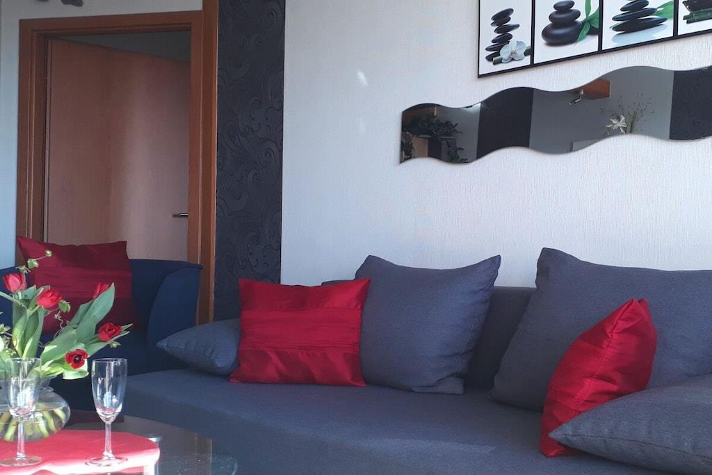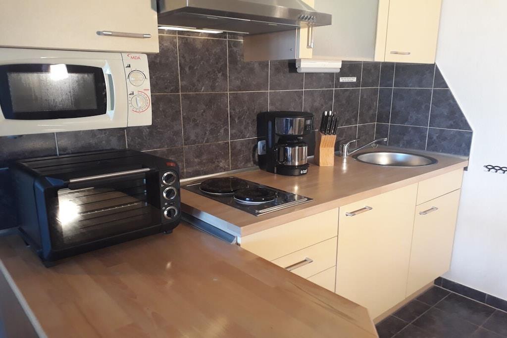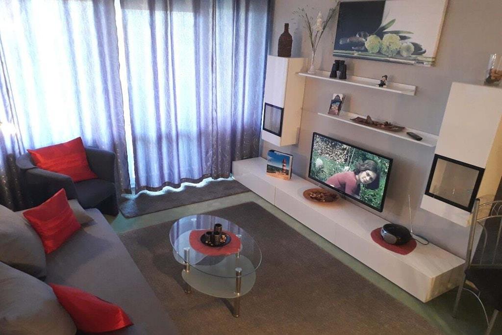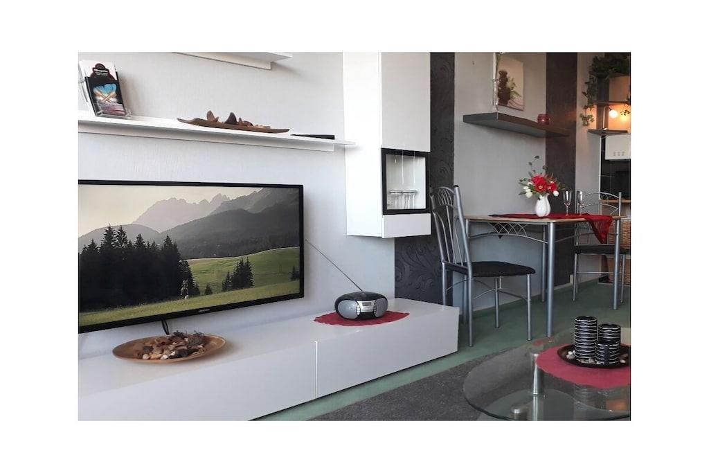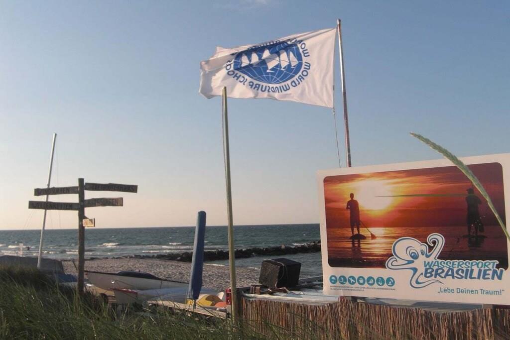 Willkommen! Als private Vermieter freuen wir uns Sie begrüßen zu dürfen und unser strandnahes und modern eingerichtetes Appartement (ca. 40m²) im 3. Stock vorstellen zu dürfen. Es ist etwa 450 m vom schönen Sandstrand entfernt, barrierefrei mit dem Fahrstuhl erreichbar und mit einer kostenlosen WLAN-Verbindung ausgestattet. Gebührenfreie Stellplätze sowie eine Bushaltestelle befinden unmittelbar vor der Anlage. Das Appartement verfügt neben einer gut ausgestatteten Küche (Geschirrtücher inkl.) und einem geräumigen Duschbad über einen Wohnschlafraum mit einer Schlafcouch (Liegefläche 140 x 200 cm) sowie einem separatem Schlafzimmer mit zwei Einzelbetten (120x 200 cm und 90x 200 cm). Das Schlafzimmer lässt sich zusätzlich durch eine Spanische-Wand trennen. Der überdachte Balkon unseres Nichtraucher-Appartements bietet eine Ausweichmöglichkeit zum rauchen. Hier können Sie den Tag auch bei untergehender Abendsonne mit Blick auf Wiesen und Au ausklingen lassen. In der Anlage befinden sich ein Restaurant, Indoor-Minigolf, eine Bierstube und eine Ladenzeile sowie Wasch- und Trockengeräte, welche gegen eine Gebühr als Münzgeräte genutzt werden können. Auf Anfrage bieten wir Ihnen gerne abschließbaren Fahrradabstellplatz für bis zu zwei Fahrräder unentgeltlich an. Beachten Sie auch gerne unser anderes Apartment „Morgensonne“ mit Meerblick.
