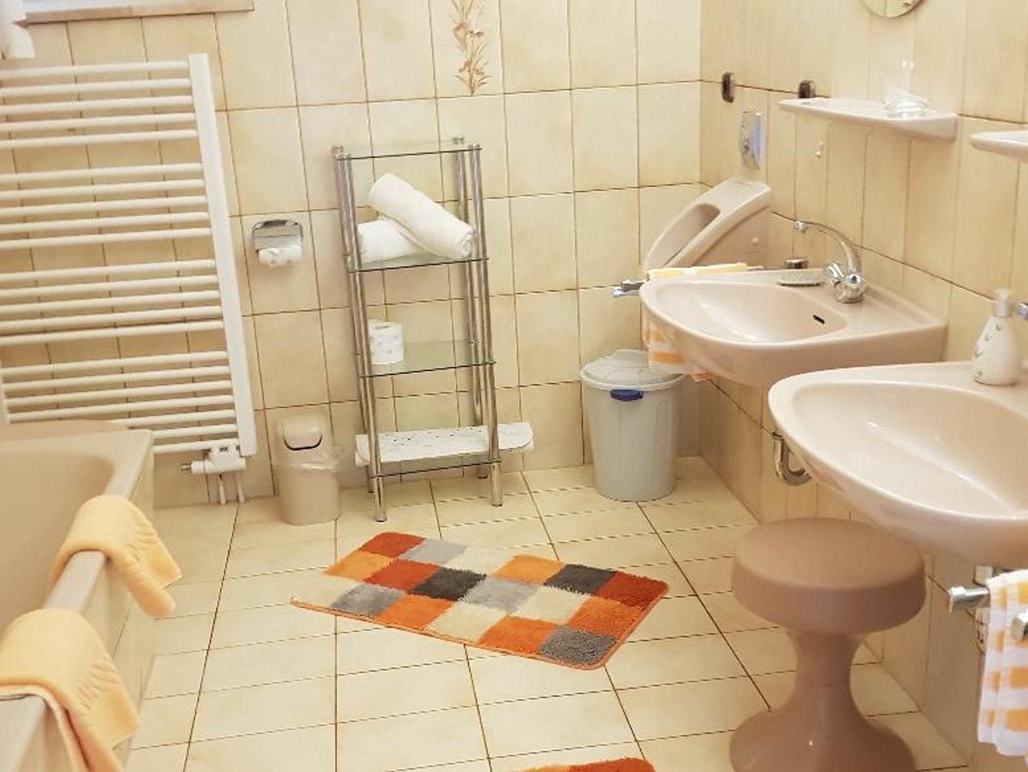 befinden sich Dusche, Badewanne, zwei Waschbecken, Pissoar und WC. Raucher sind willkommen, in der