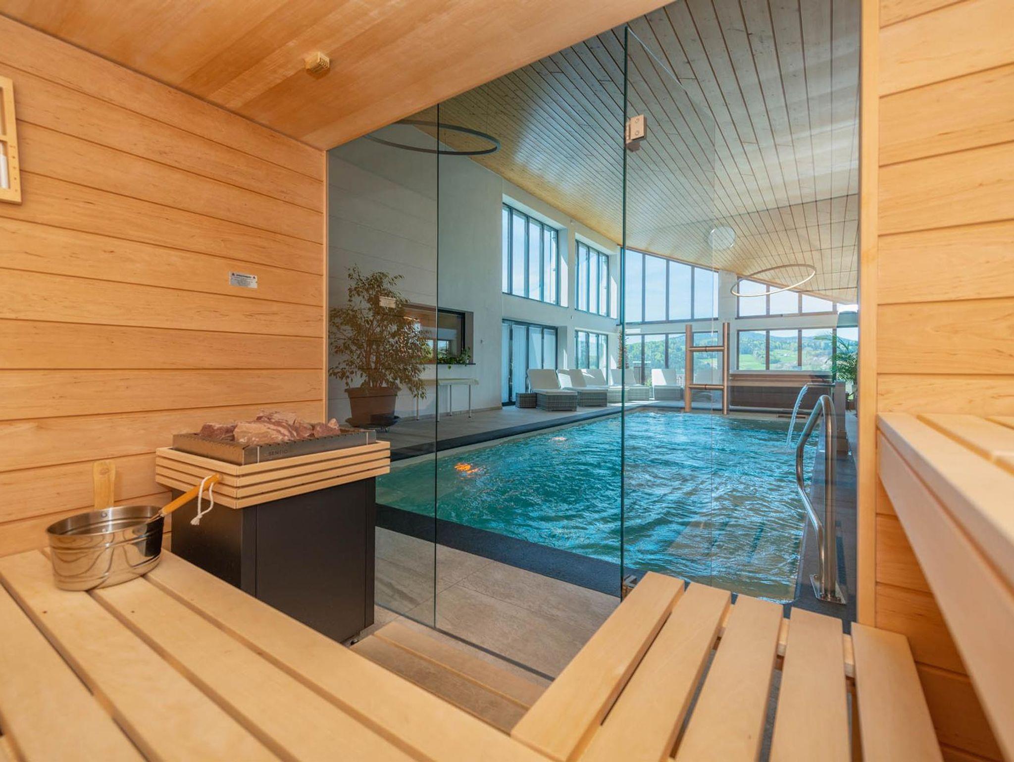 Das Schwimmbad mit Sauna und Dampfbad für zwei Personen 2 Stunden 140,00 €.