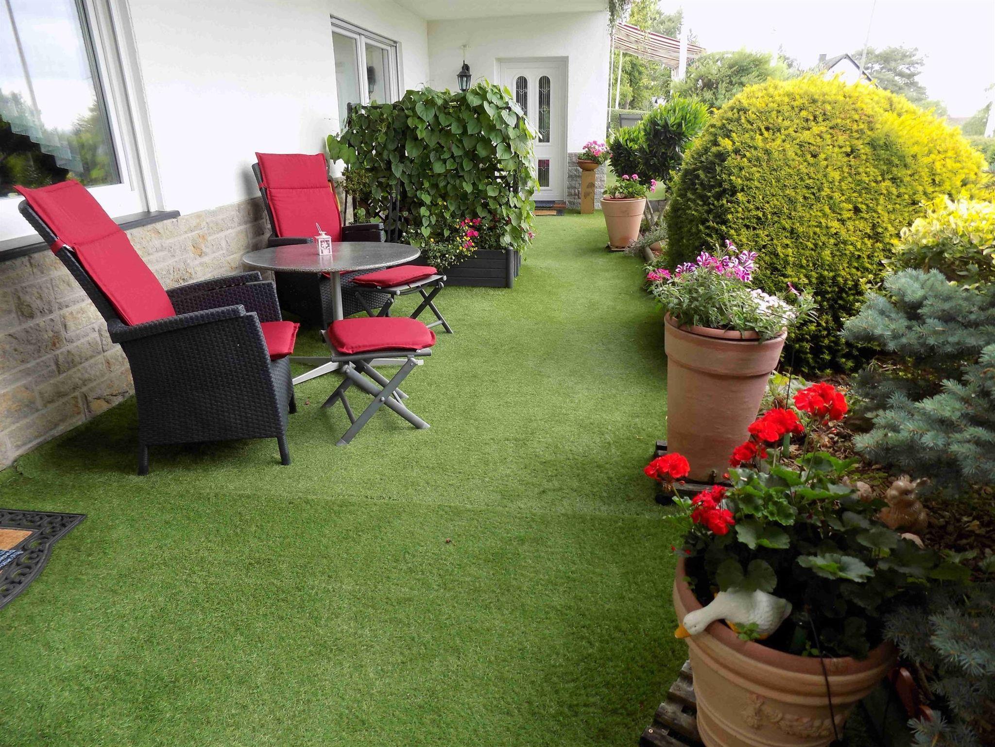 Terrasse: mit Gartenmöbel, Grill