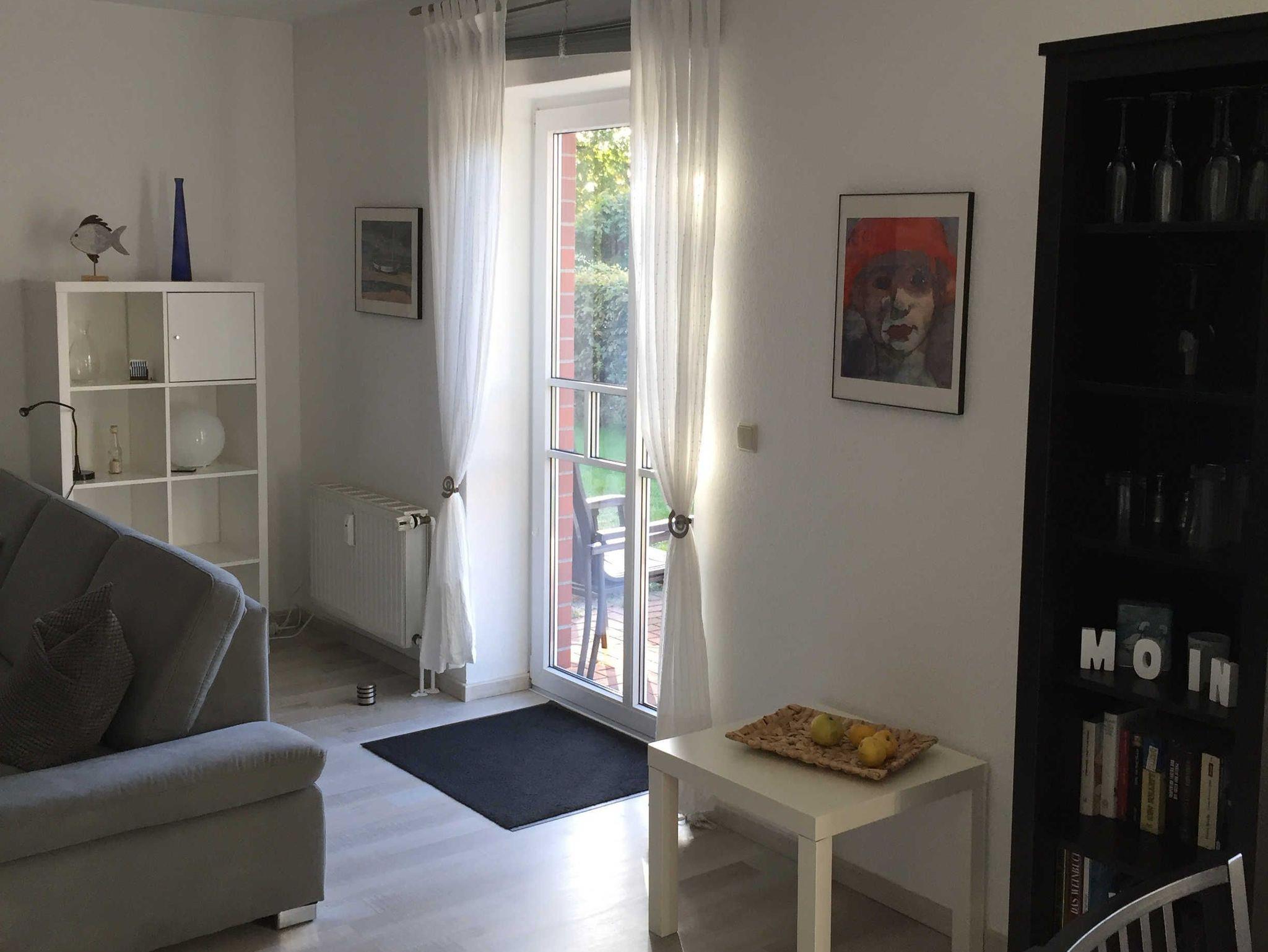 Die helle und modern eingerichtete Ferienwohnung Meeresbrise liegt in einer ruhigen Sackgassenstraße Schönhagens und ist nur ca. 100 Meter von der Ostsee entfernt. Mit ihren 58m² ist sie für bis zu 3 Personen plus Kleinkind geeignet und verfügt über einen großzügigen Wohnraum mit Doppelbett-Schlafcouch (1,40 x 2,30m), einen Essbereich und eine offene, voll ausgestattete Küche mit Geschirrspüler. Von hier aus gelangt man auf die möblierte Terrasse mit eigenem Strandkorb. Im Schlafzimmer befindet sich ein Doppelbett sowie ein großer Kleiderschrank. Das helle Badezimmer ist mit einer Wanne und einer Waschmaschine ausgestattet.