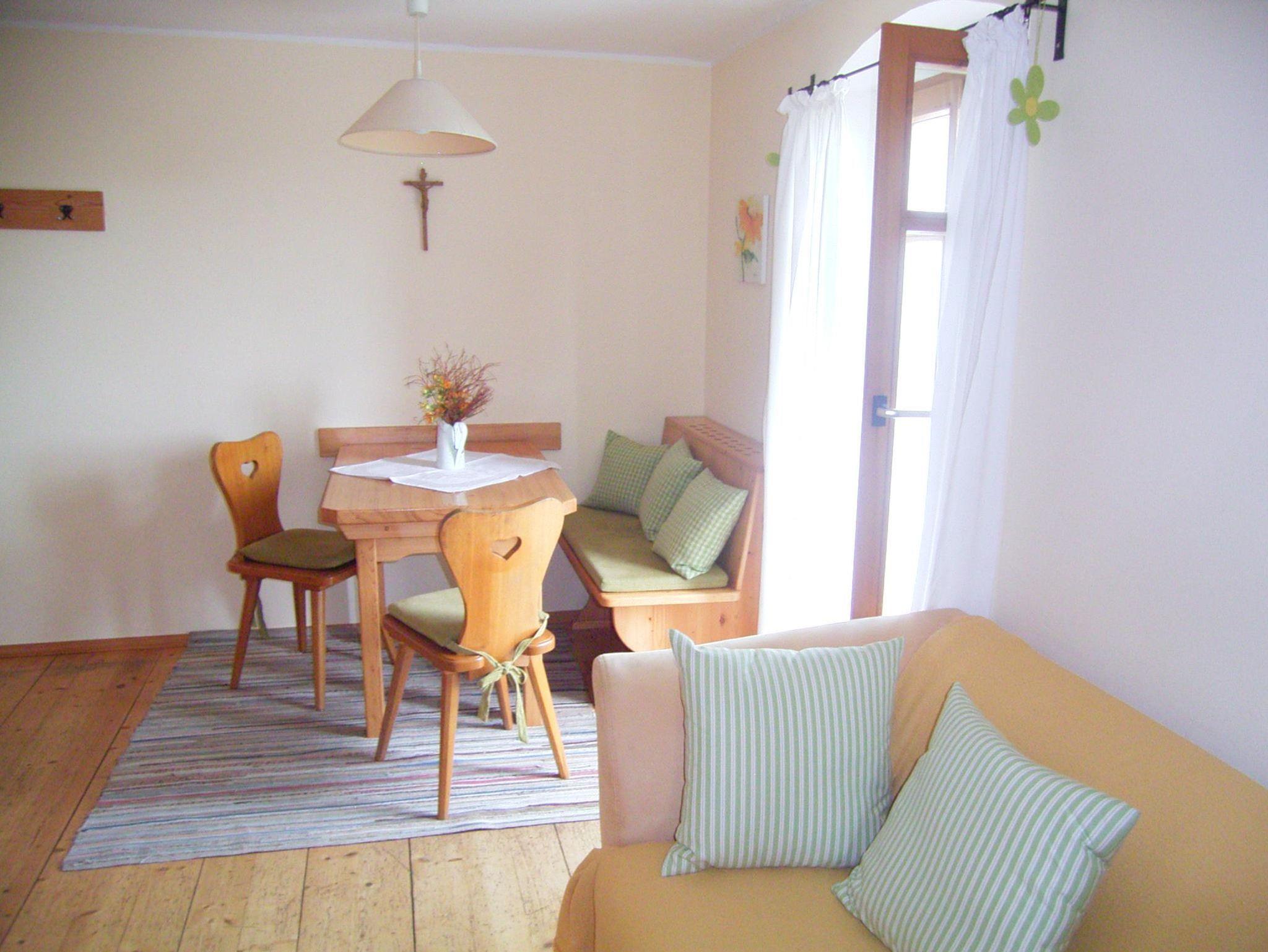Die Ferienwohnung Obstgarten ist 50qm groß, im Obergeschoss und bietet Platz für 4 Personen. Die gemütlich eingerichtete Ferienwohnung befindet sich in einem mit viel Liebe und Gespür renoviertem Bauernhaus. Die beiden Schlafzimmer mit einem Doppelbett und zwei Einzelbetten bieten Platz für bis zu 4 Personen. Im Wohnzimmer befinden sich neben dem kuscheligen Sofa auch eine kleine Essecke sowie eine voll ausgestattete Kochnische mit Kaffeemaschine, Mikrowelle und E-Herd. Das kleine Bad mit Dusche, WC und Waschbecken lässt keine Wünsche offen. Auf dem schönen Balkon können Sie die Sonne genießen. Bettwäsche, Hand- und Duschtücher sowie das Babypaket werden gestellt und sind im Preis enthalten. Die Betten sind bei Ihrer Anreise bereits bezogen. Auf Wunsch bekommen Sie auch Betten für Allergiker.