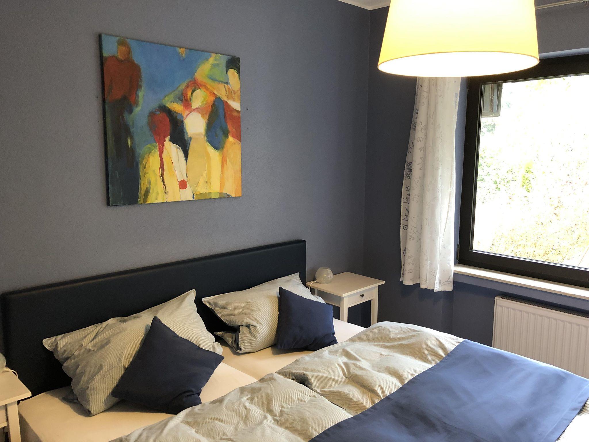 Unser Haus verfügt über 60m² und ist individuell und liebevoll eingerichtet. Die persönliche Note erhält es durch zahlreiche Kunstwerke der Dauner Künstlerin Jutta Schulte-Gräfen. Wohn-und Essbereich sind lichtdurchflutet und gemütlich,Sat TV und WLAN selbstverständlich. Mit Rücksicht auf unsere Gäste ist unser Haus auf Nichtraucher ausgerichtet und Haustiere sind nicht erlaubt.Die Küche ist komplett eingerichtet, das Duschbad mit Handtüchern und Fön ausgestattet.Die beiden Schlafzimmer bieten hohen Schlafkomfort in Boxspringbetten der Fränkischen Bettenmanufaktur.Ein Flyer E-Bike mit niedrigem Einstieg wird gegen 20€ Tagesgebühr zur Verfügung gestellt.