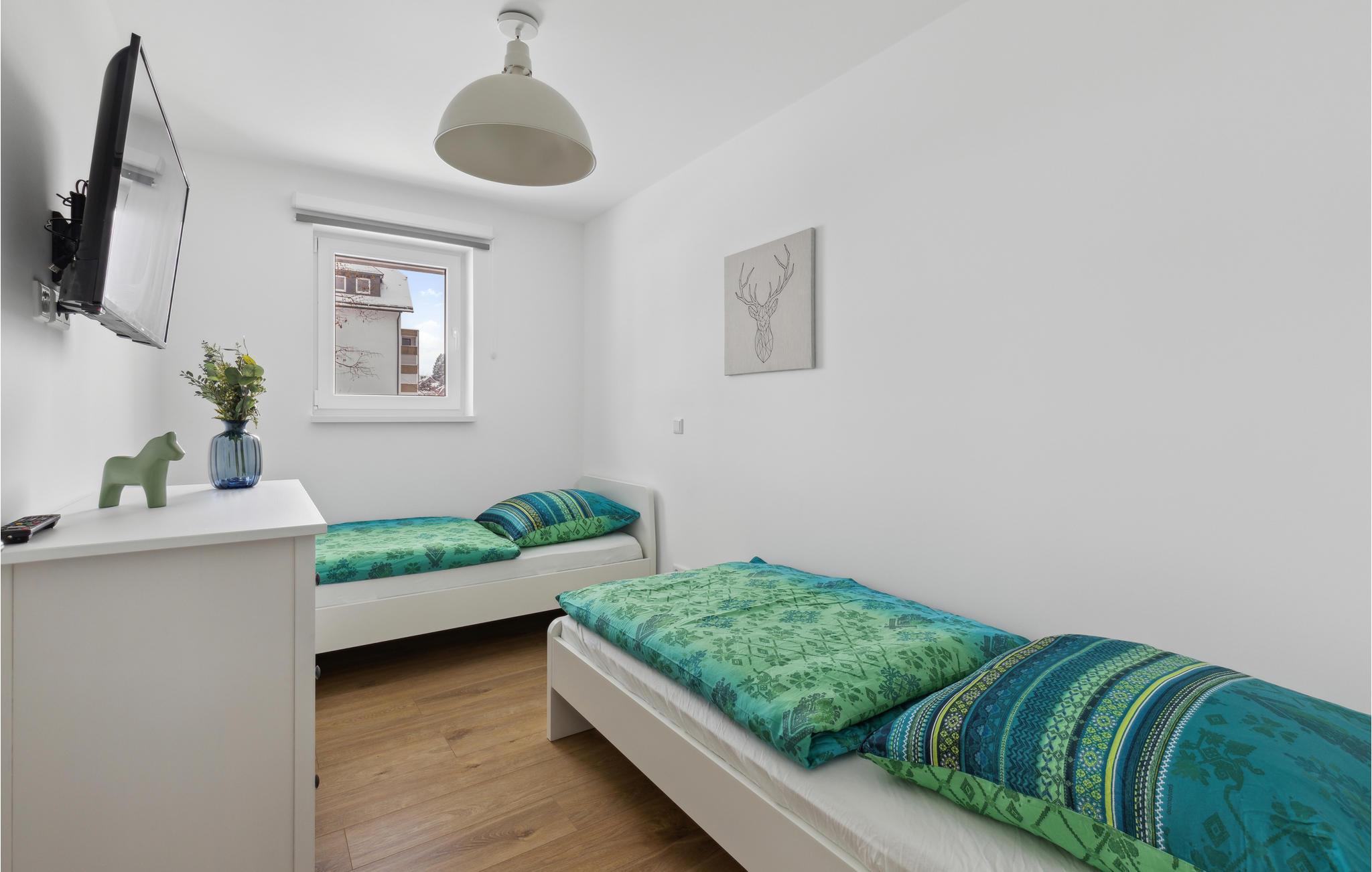 Freuen Sie sich auf einen entspannten und abwechslungsreichen Urlaub in dieser Ferienwohnung nahe herrlicher Natur. Zu der gehobenen Ausstattung der Apartments gehören eine komplette Einbauküche inklusive hochwertiger Geräte sowie ein helles und geräumiges Wohnzimmer mit stilvollem Ambiente. Die Ferienwohnung bietet viel Platz für gemeinsame Aktivitäten. Kochen Sie gemeinsam, veranstalten Sie einen Spieleabend an der Spielkonsole oder plaudern Sie gemütlich auf den Sofas.